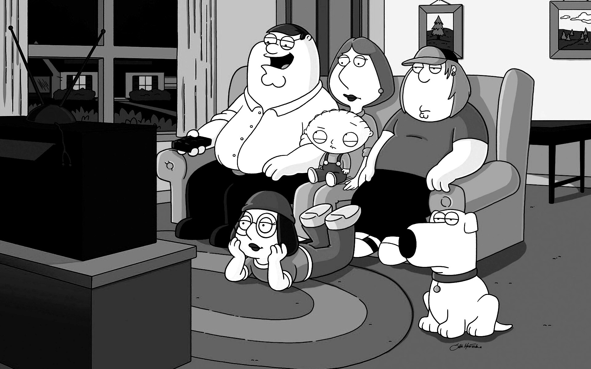 «Гриффины всей семьей перед телевизором»