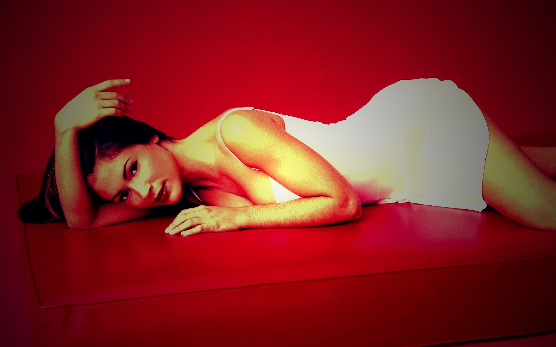«Алиса Милано на красном диване»