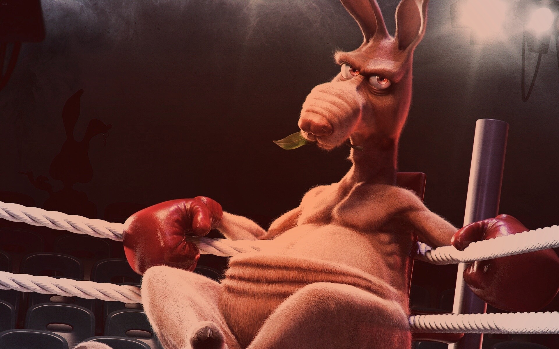 Обои для рабочего стола «Кенгуру-боксер на ринге» 1920х1200 с фильтром toaster (оригинал 1920х1200)