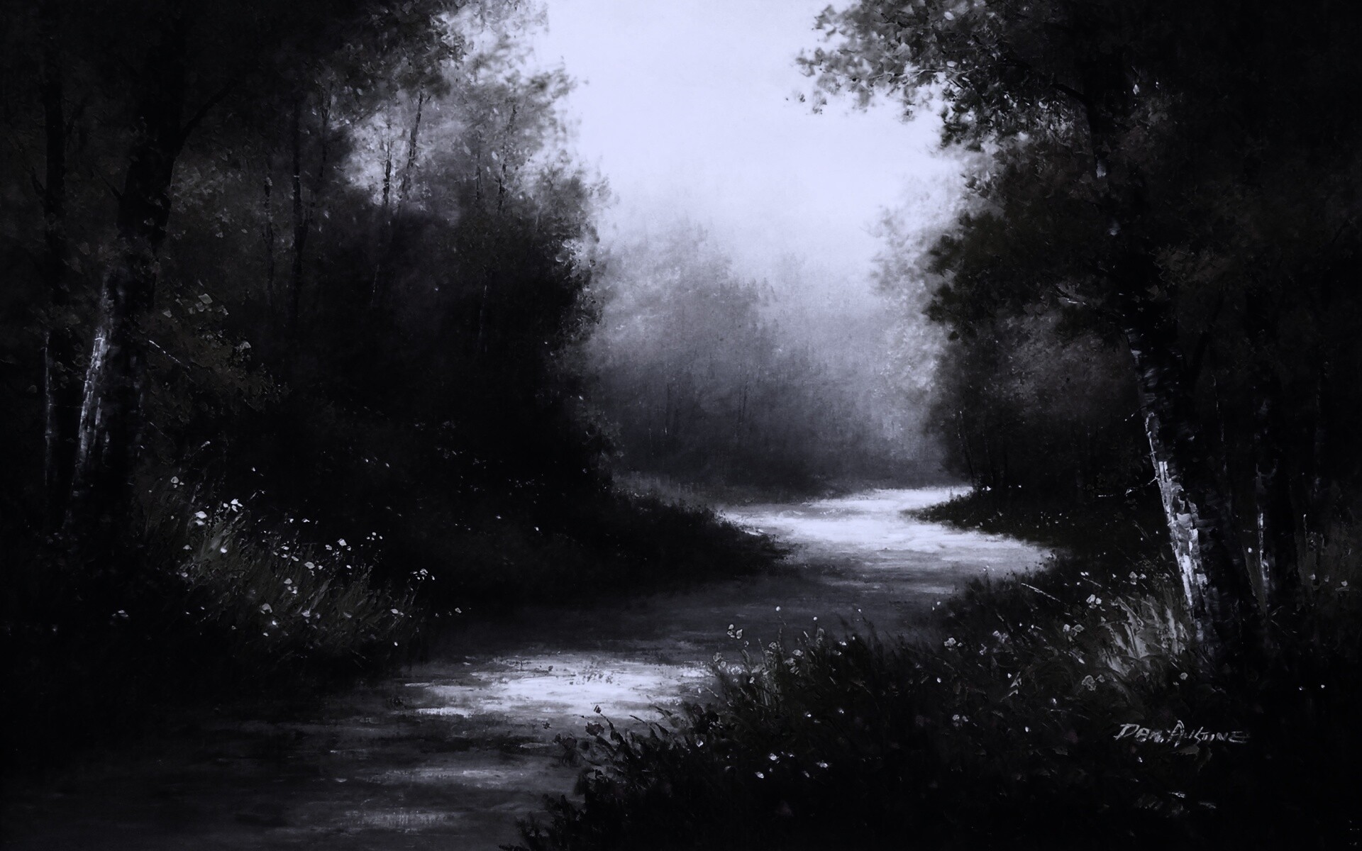 Обои для рабочего стола «Рисунок лесной дороги» 1920х1200 с фильтром gotham (оригинал 2765х1820)