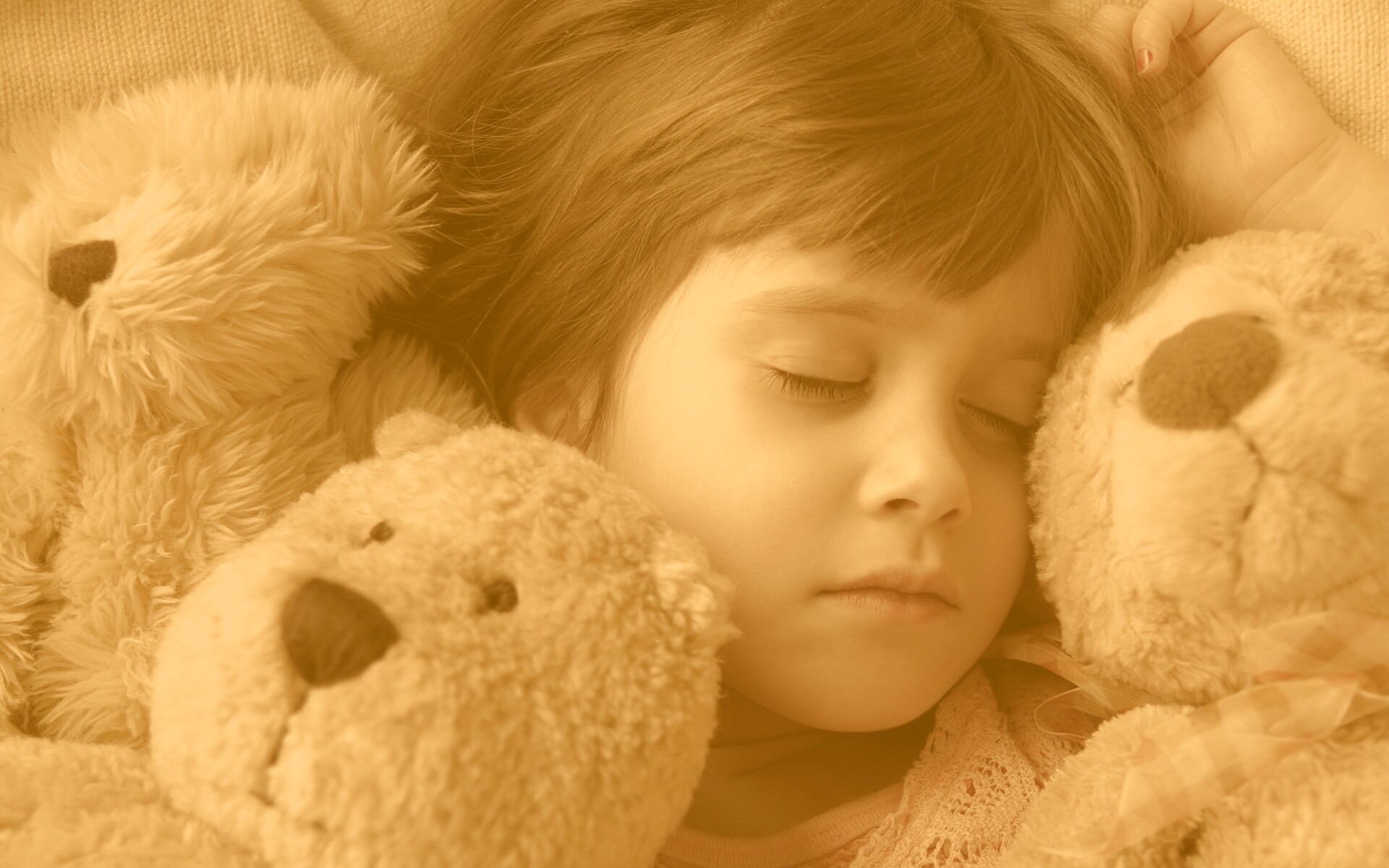 «Девочка спит с мишками в обнимку»