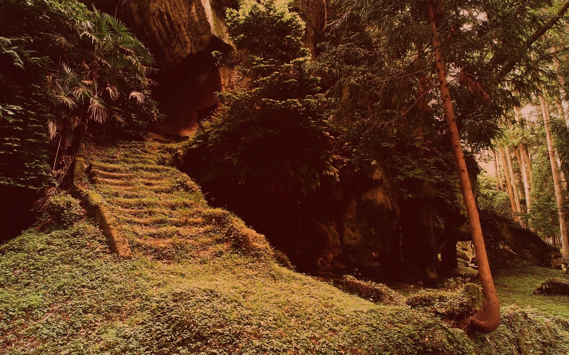 Обои для рабочего стола «Старинный лесной храм» 1920х1200 с фильтром toaster (оригинал 2560х1600)