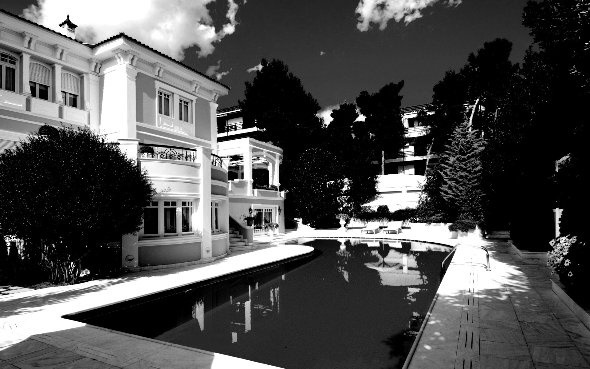 Обои для рабочего стола «Особняк с бассейном» 1920х1200 с фильтром inkwell (оригинал 2560х1600)