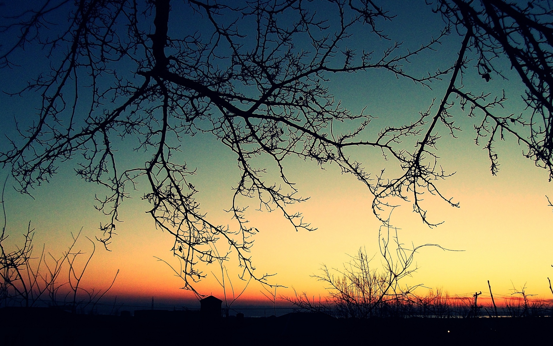 «Закат сквозь ветки деревьев»