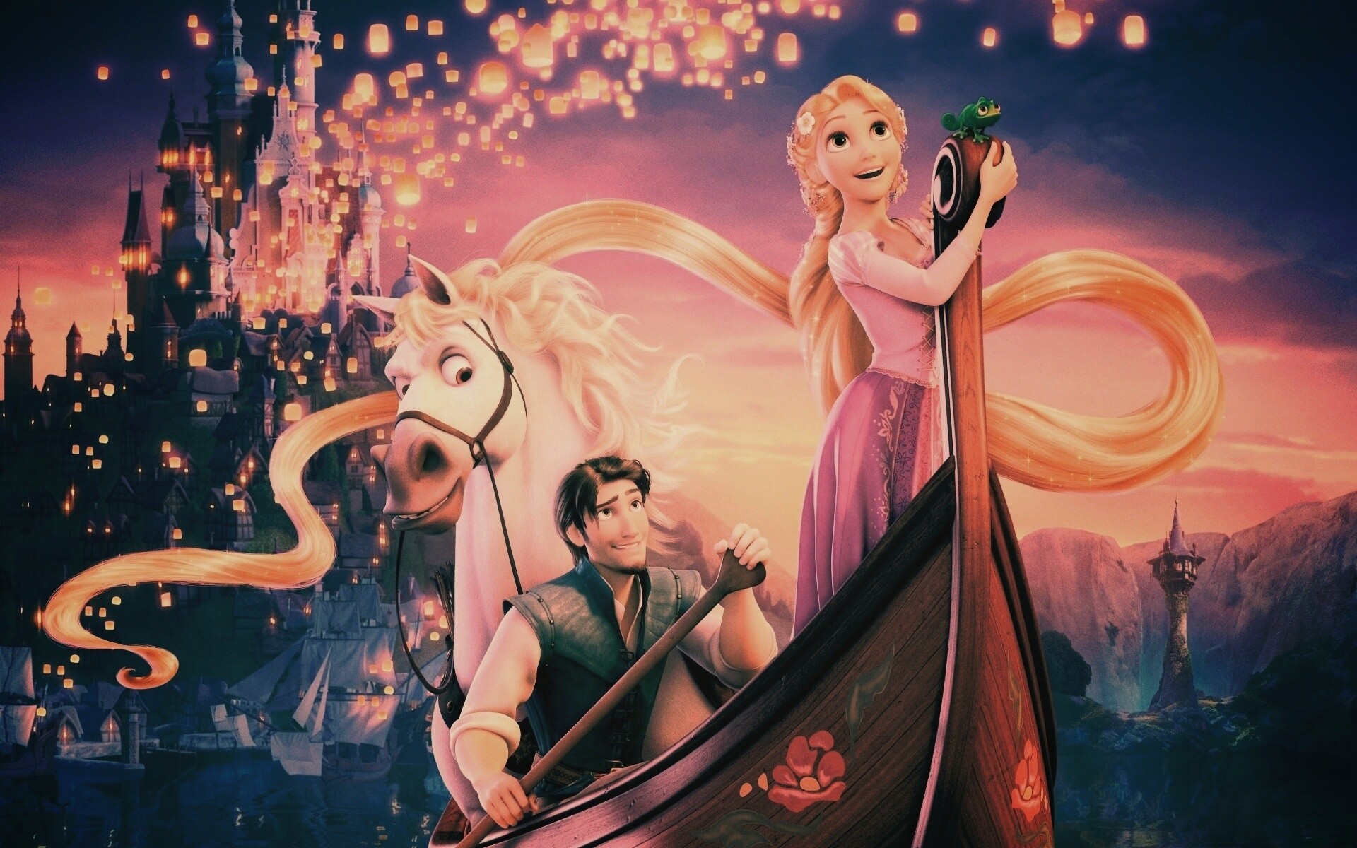 «Рапунцель принц и конь в лодке»
