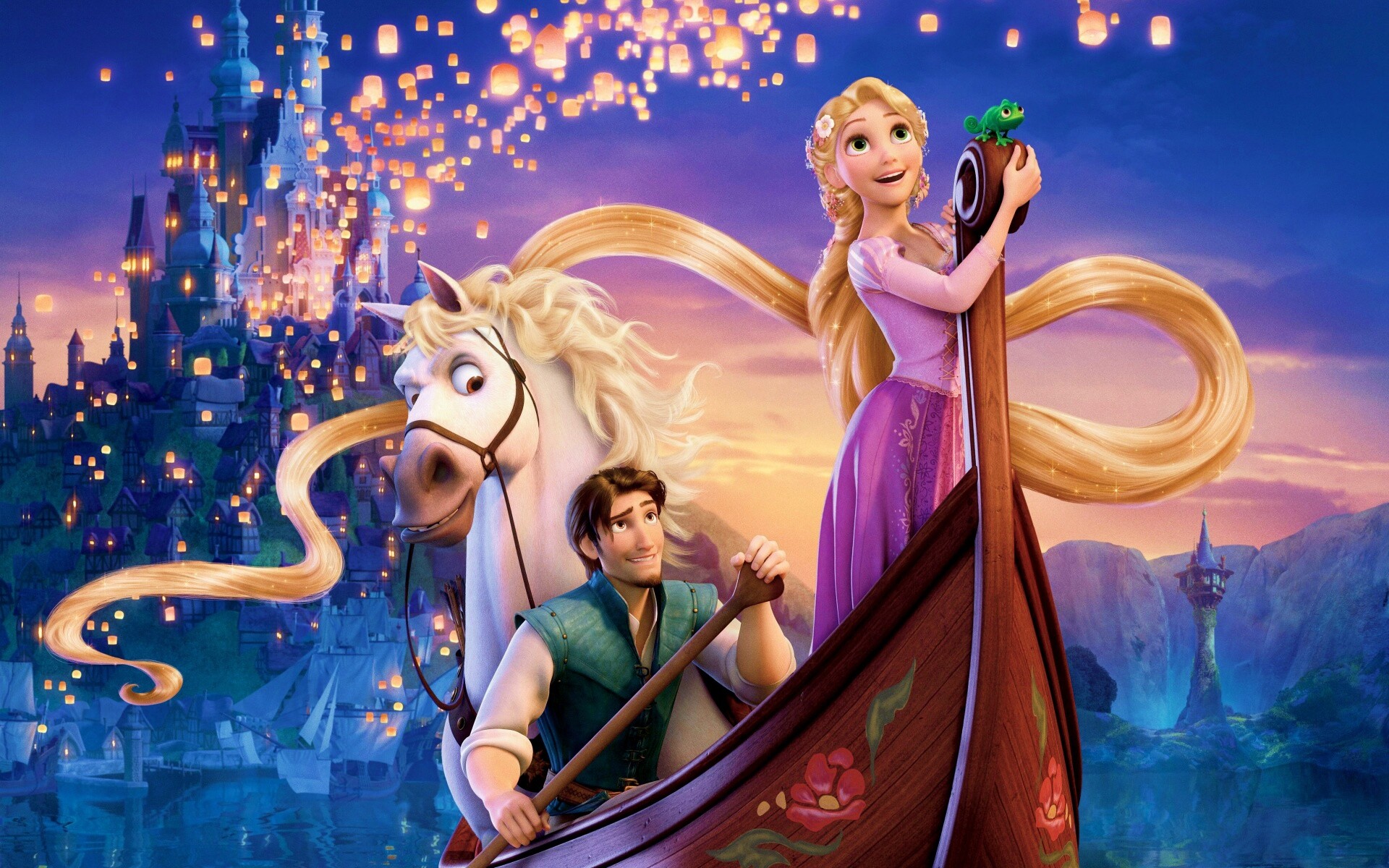 «Рапунцель принц и конь в лодке»