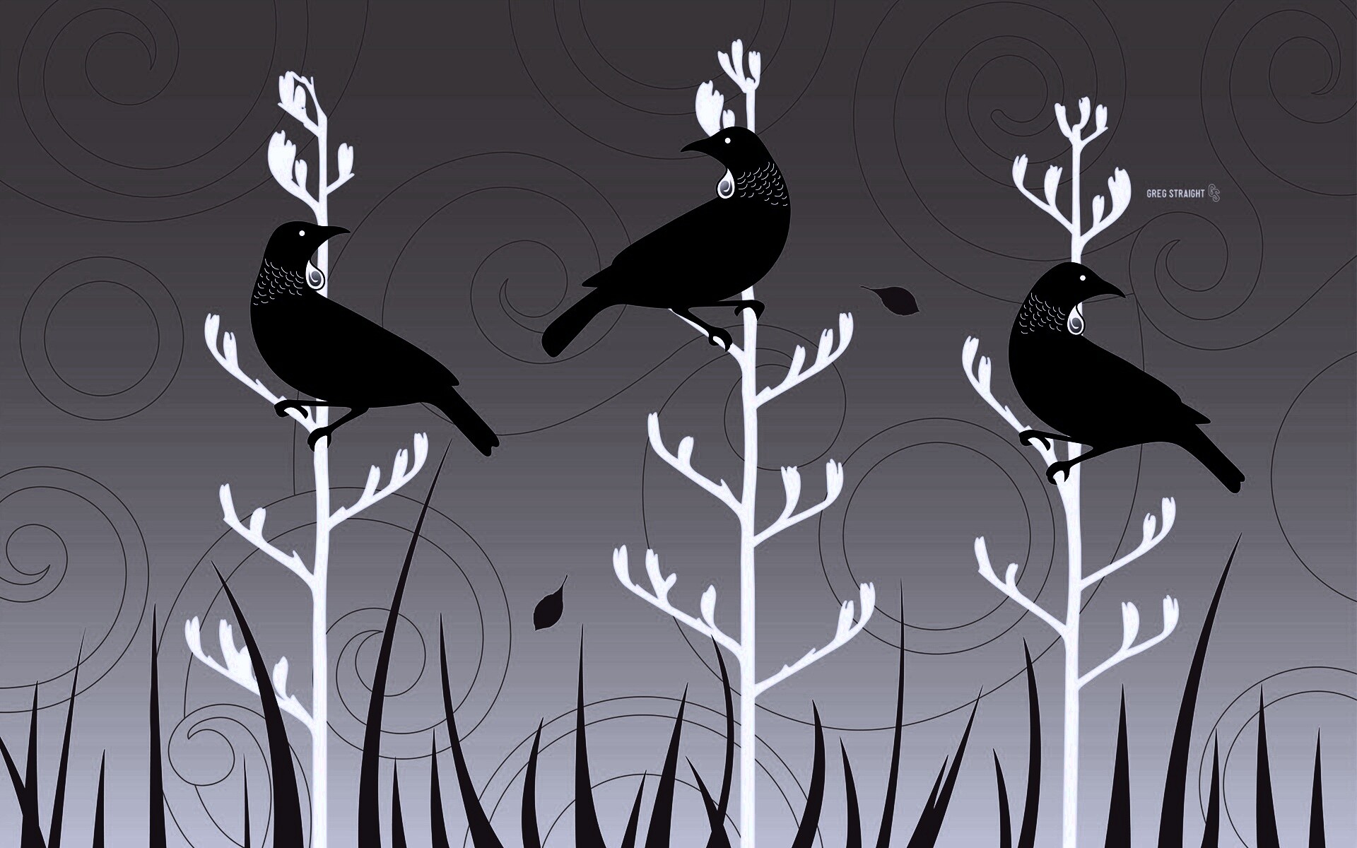 «Векторные стилизованные птицы на ветках дерева»