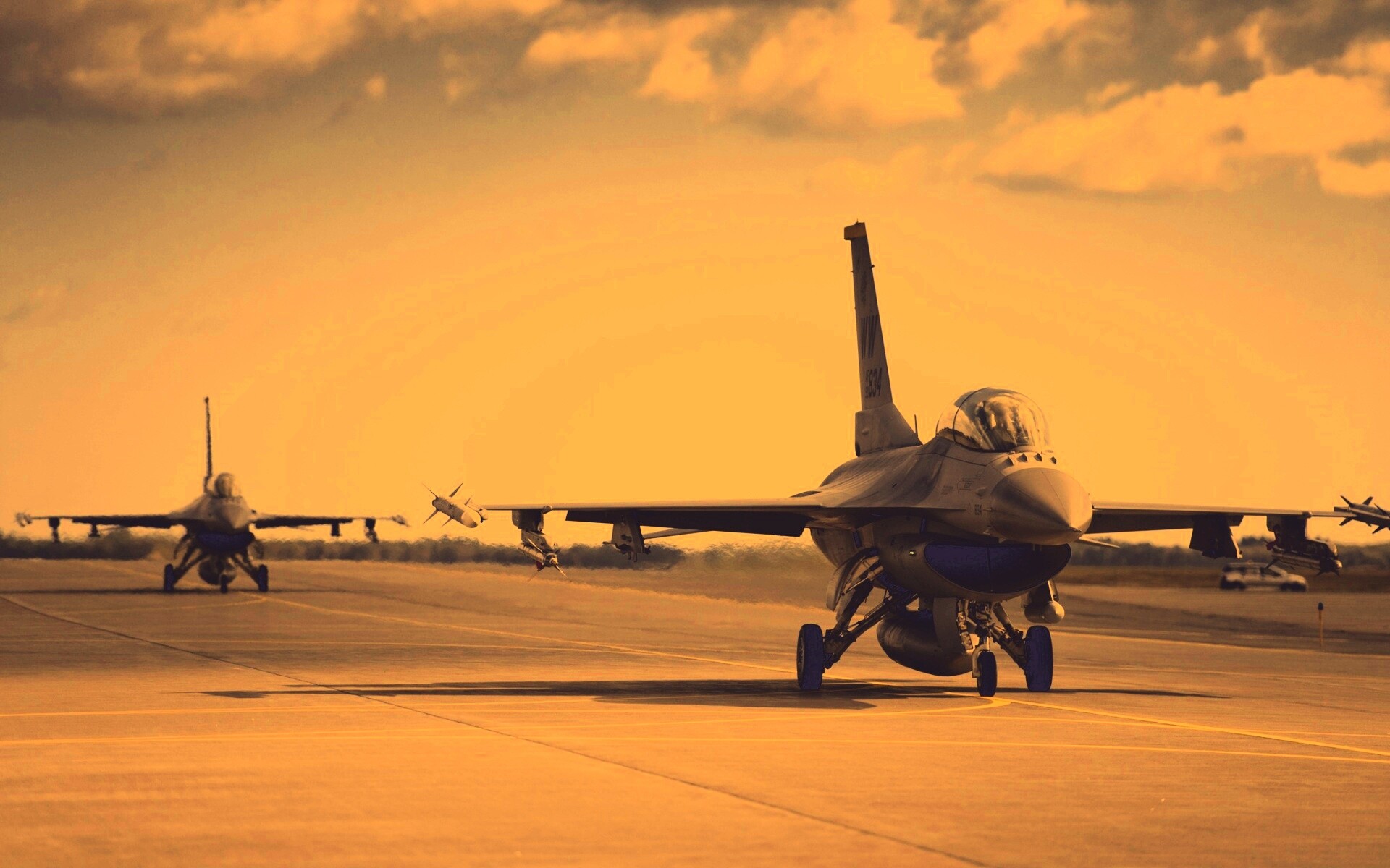 «Истребители f16 Falcon на взлетной полосе»