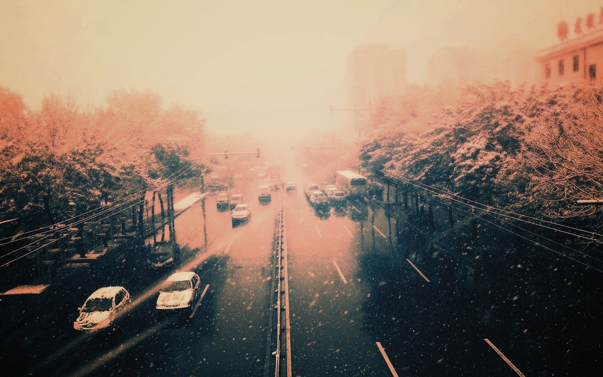 Обои для рабочего стола «Снегопад в токио» 1920х1200 с фильтром earlybird (оригинал 1920х1200)