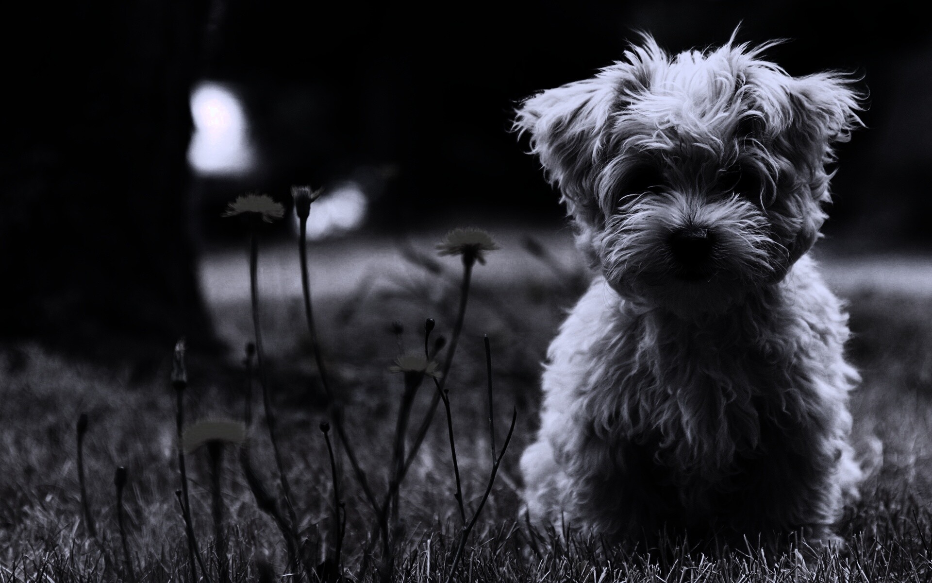 Обои для рабочего стола «Щенок болонки» 1920х1200 с фильтром gotham (оригинал 1920х1200)