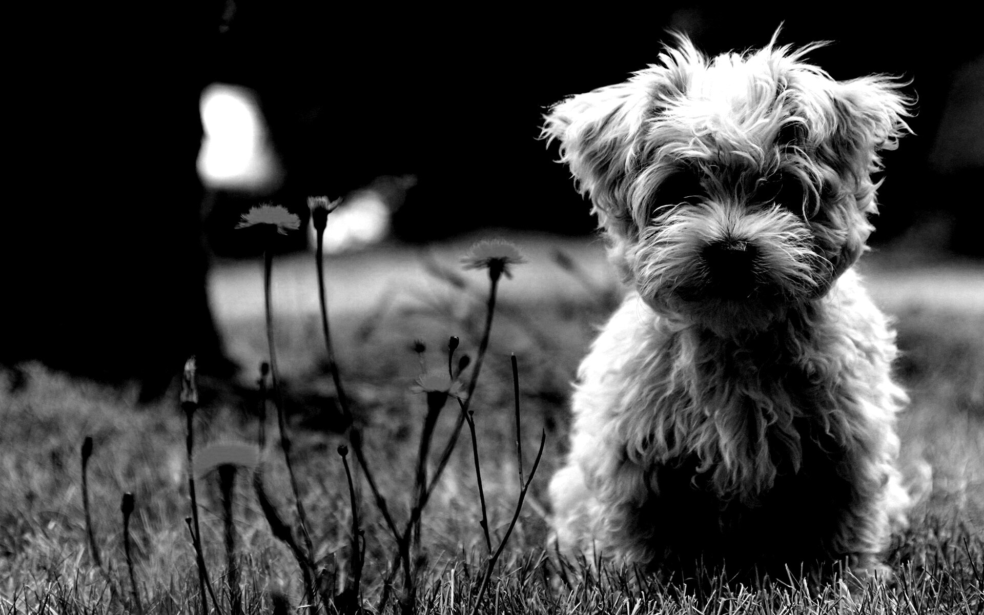 Обои для рабочего стола «Щенок болонки» 1920х1200 с фильтром inkwell (оригинал 1920х1200)