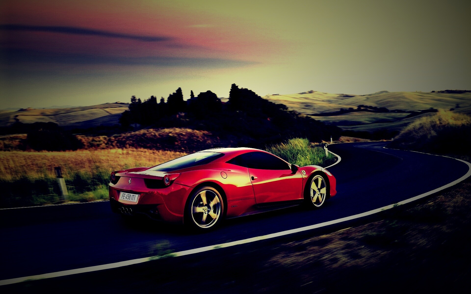 «Красная феррари на извилистой дороге»
