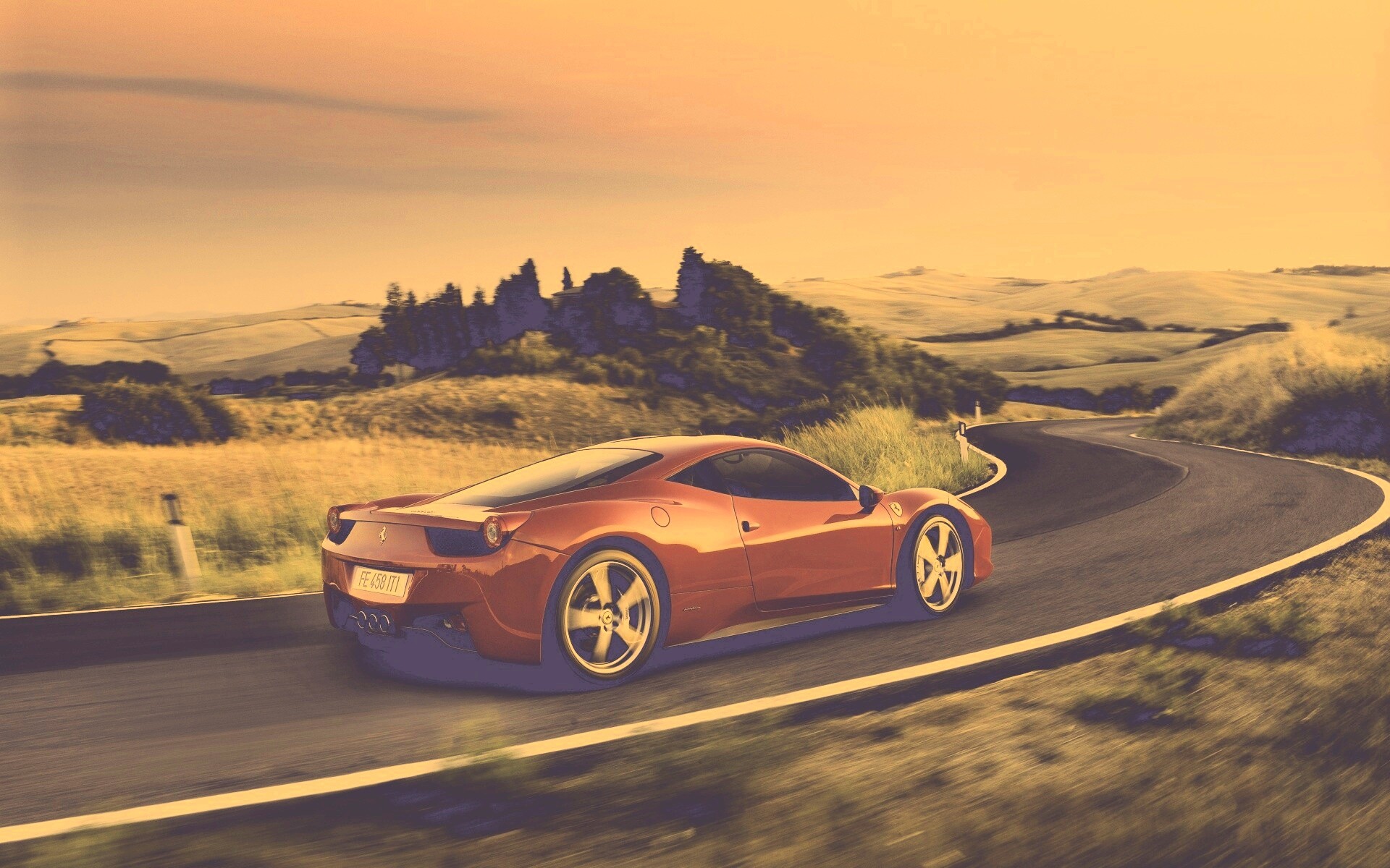«Красная феррари на извилистой дороге»