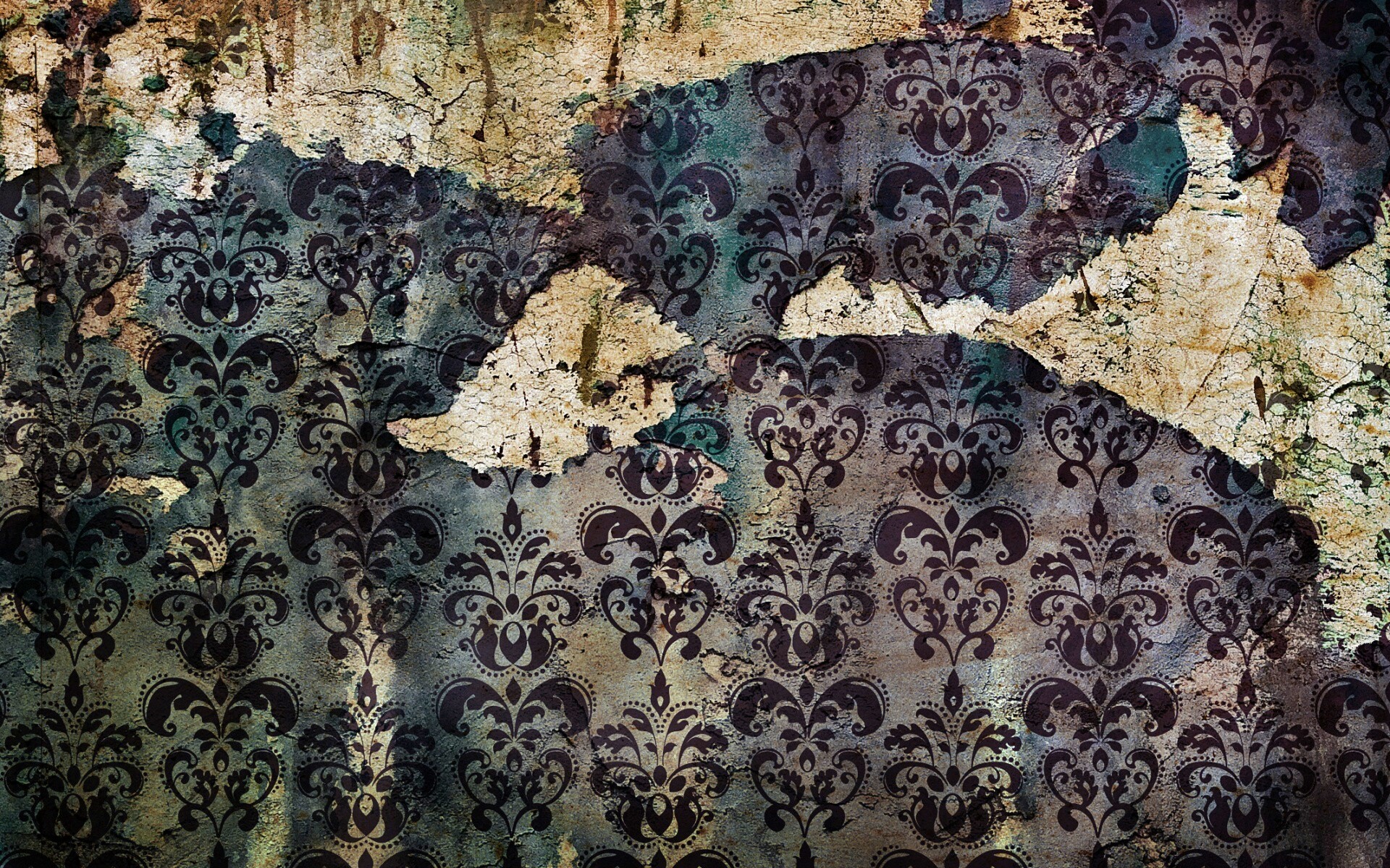 Обои для рабочего стола «Рваные винтажные обои и штукатурка» 1920х1200 с фильтром vibrance (оригинал 2134х1461)