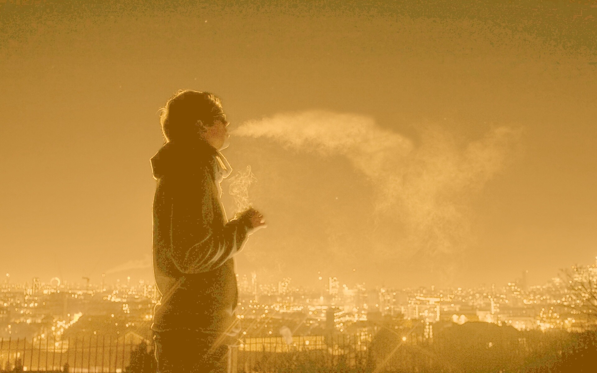 Обои для рабочего стола «Курящий на крыше парень» 1920х1200 с фильтром kelvin (оригинал 2560х1600)
