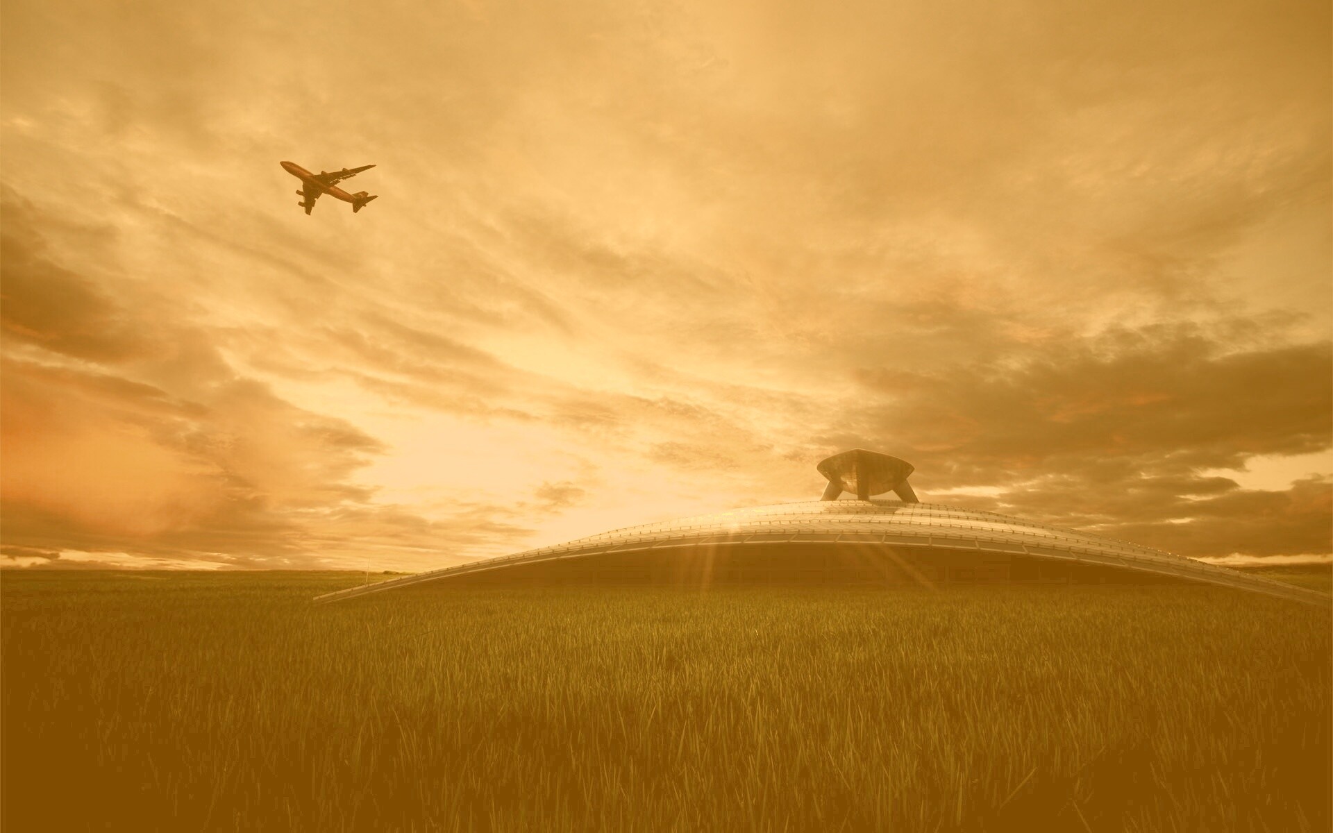 «Самолет в закатном небе»