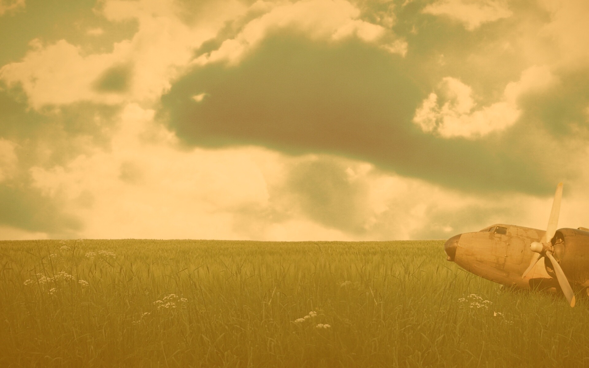 «Старый ржавый самолет на лугу»