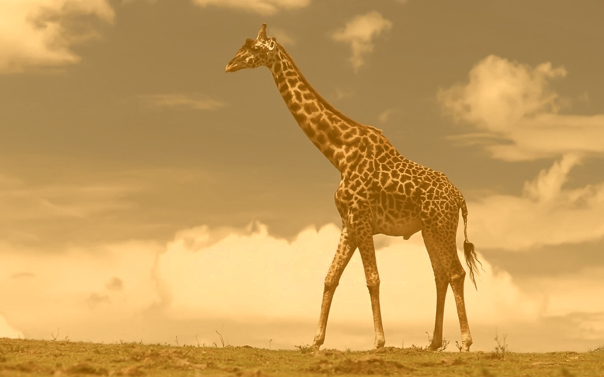 Обои для рабочего стола «Жираф на прогулке» 1920х1200 с фильтром kelvin (оригинал 1920х1200)