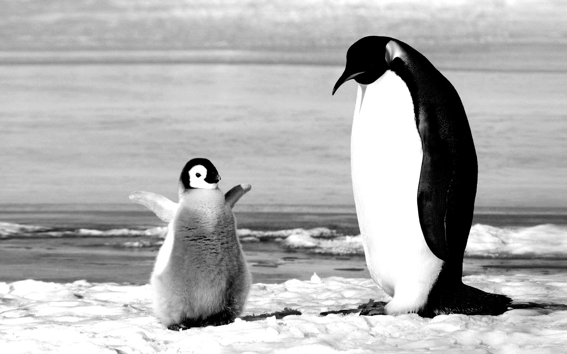 Обои для рабочего стола «Радостный пингвинёнок» 1920х1200 с фильтром inkwell (оригинал 1920х1200)
