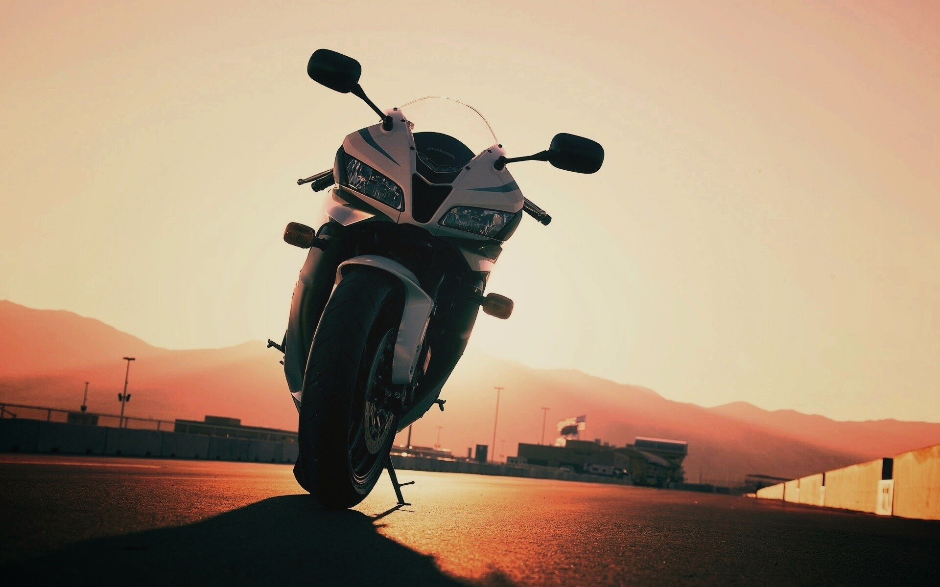«Мотоцикл на фоне заходящего солнца»
