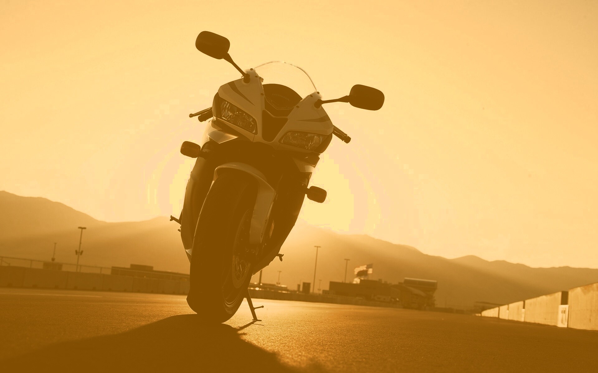 «Мотоцикл на фоне заходящего солнца»