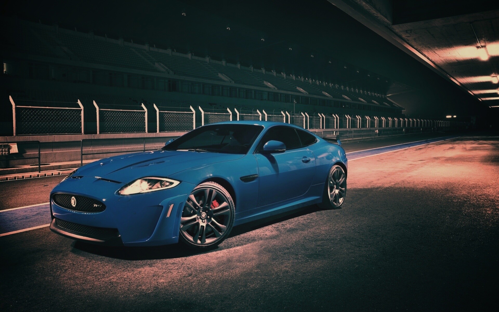 «Синий спорткар на гоночном треке»