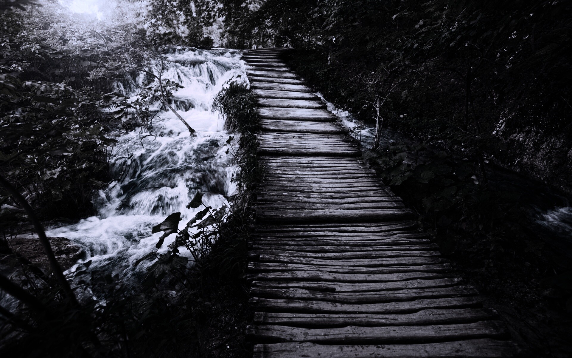 Обои для рабочего стола «Деревянная дорожка над ручьем» 1920х1200 с фильтром gotham (оригинал 2560х1600)