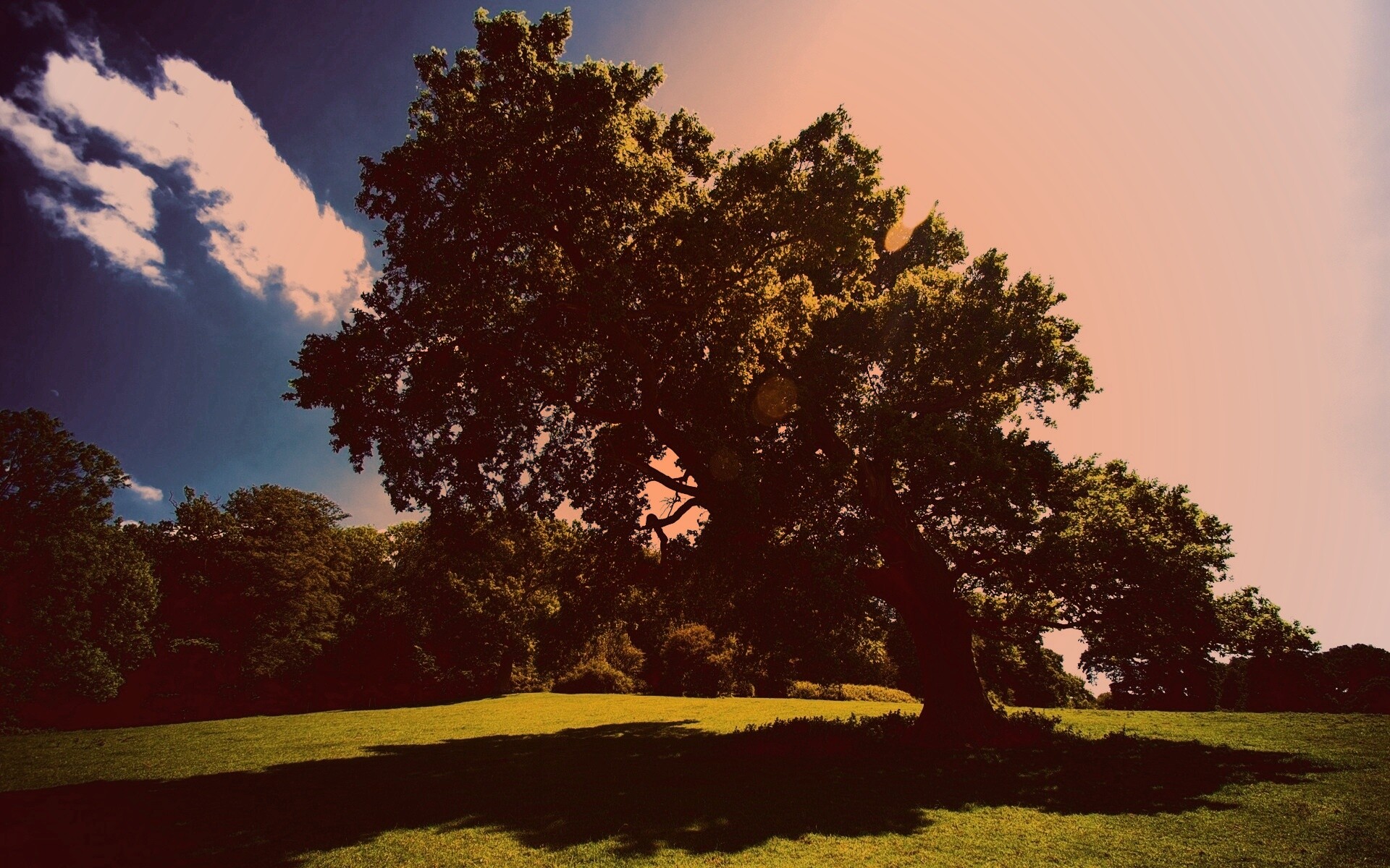 «Большое зеленое дерево на лужайке»
