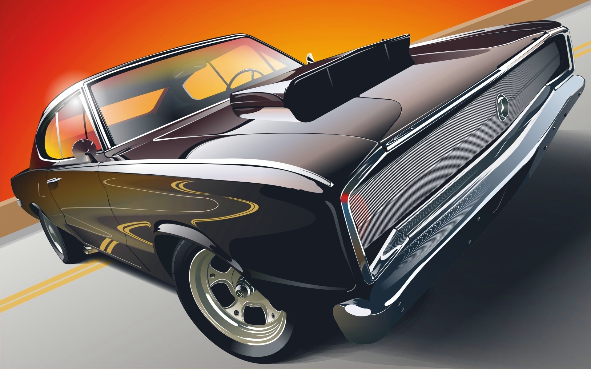 Обои для рабочего стола «Векторный мускулкар» 1920х1200 с фильтром vibrance (оригинал 1920х1440)