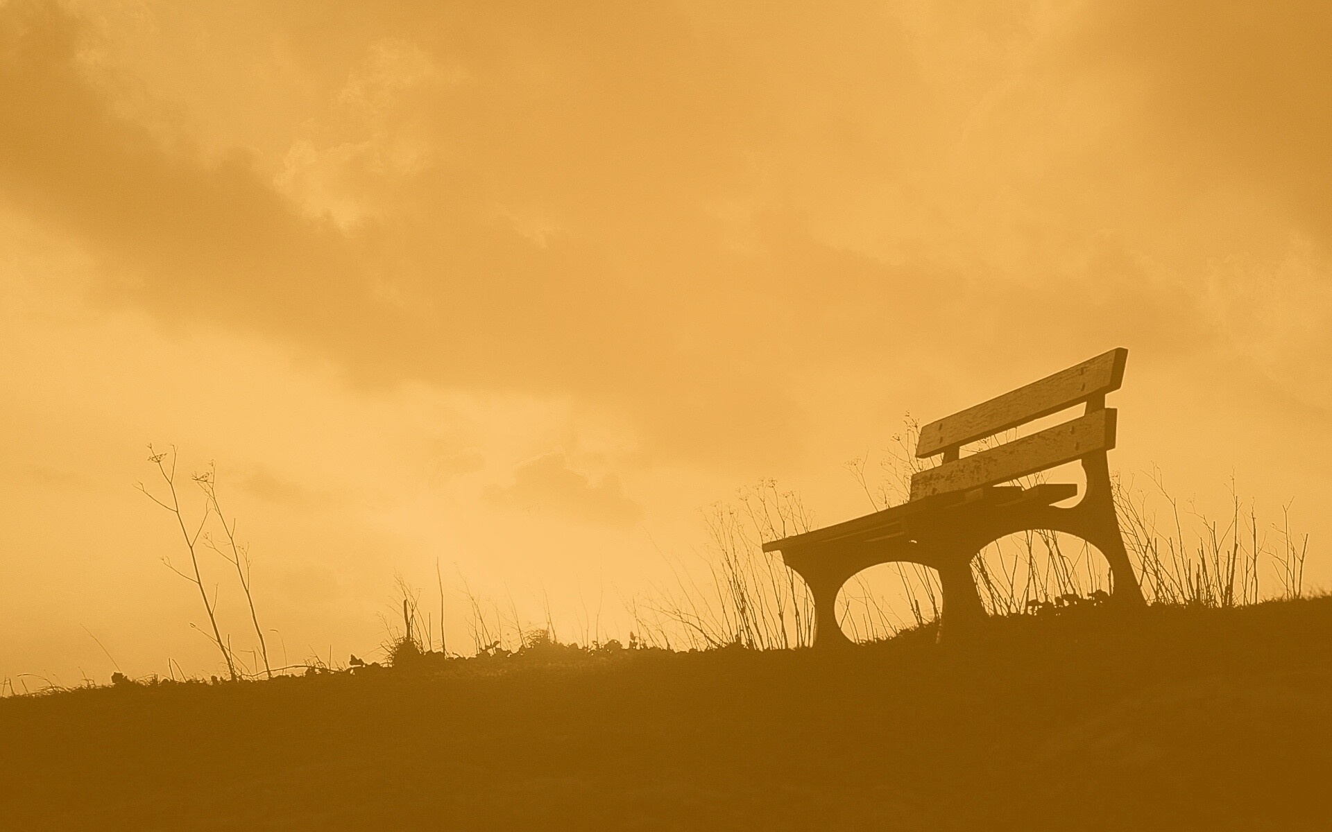 «Силуэт скамейки на фоне неба»