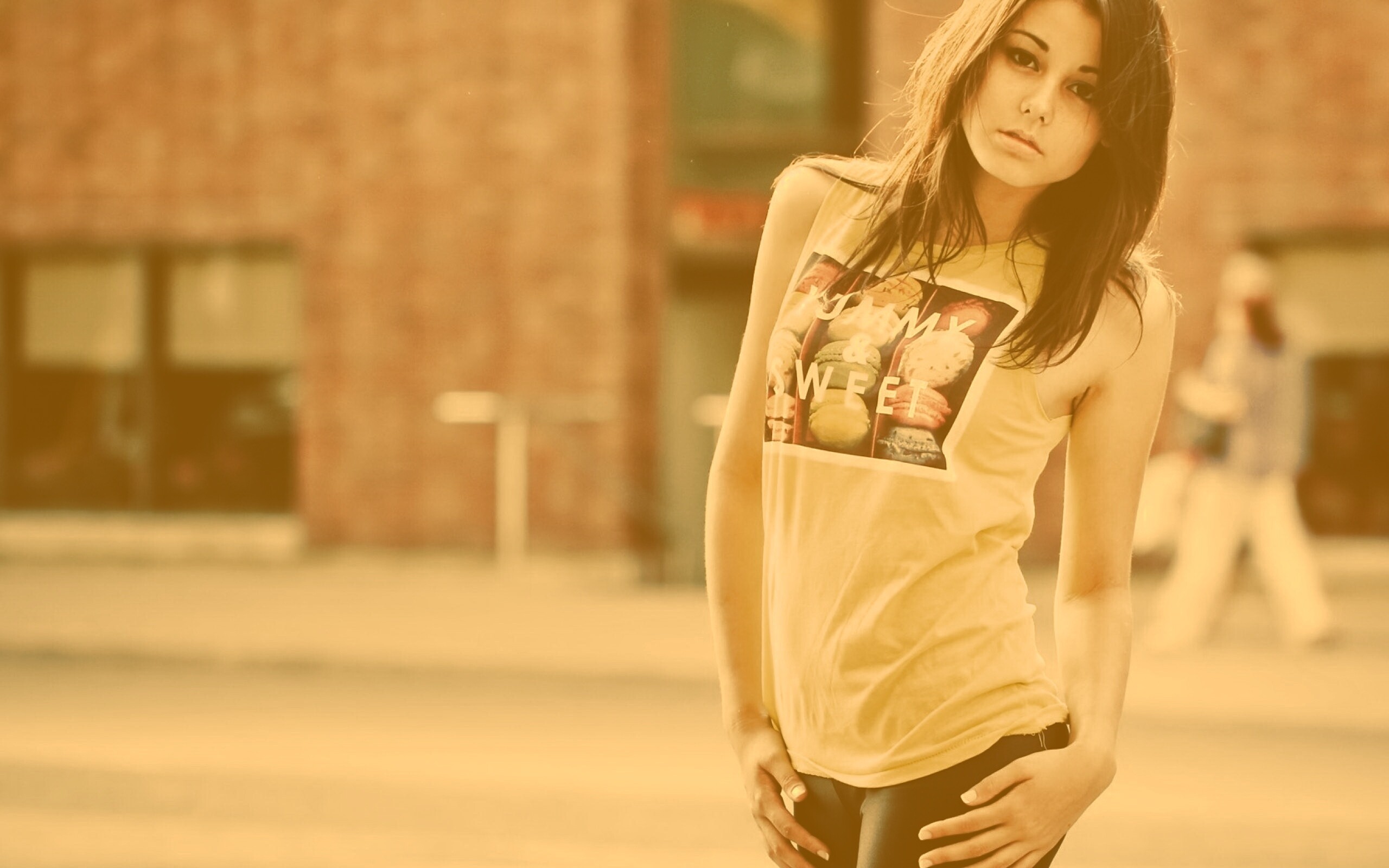 Обои для рабочего стола «Молодая девушка в городе» 2560х1600 с фильтром kelvin (оригинал 2560х2048)