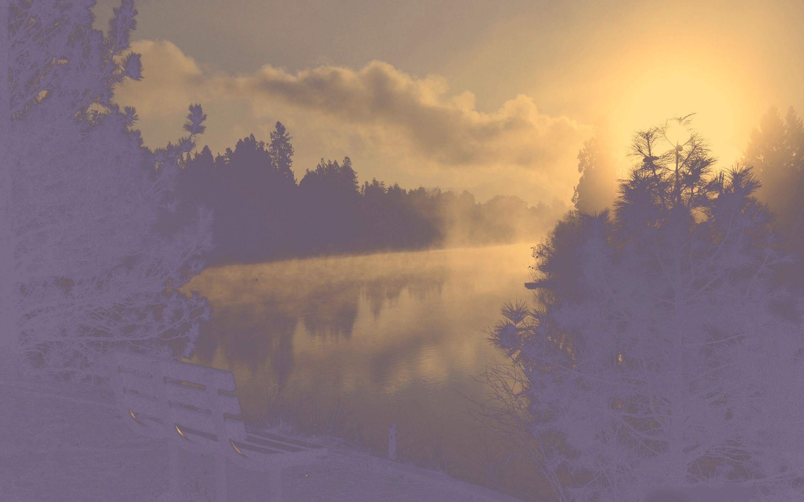 Обои для рабочего стола «Туманное озеро» 2560х1600 с фильтром nashville (оригинал 2560х1600)