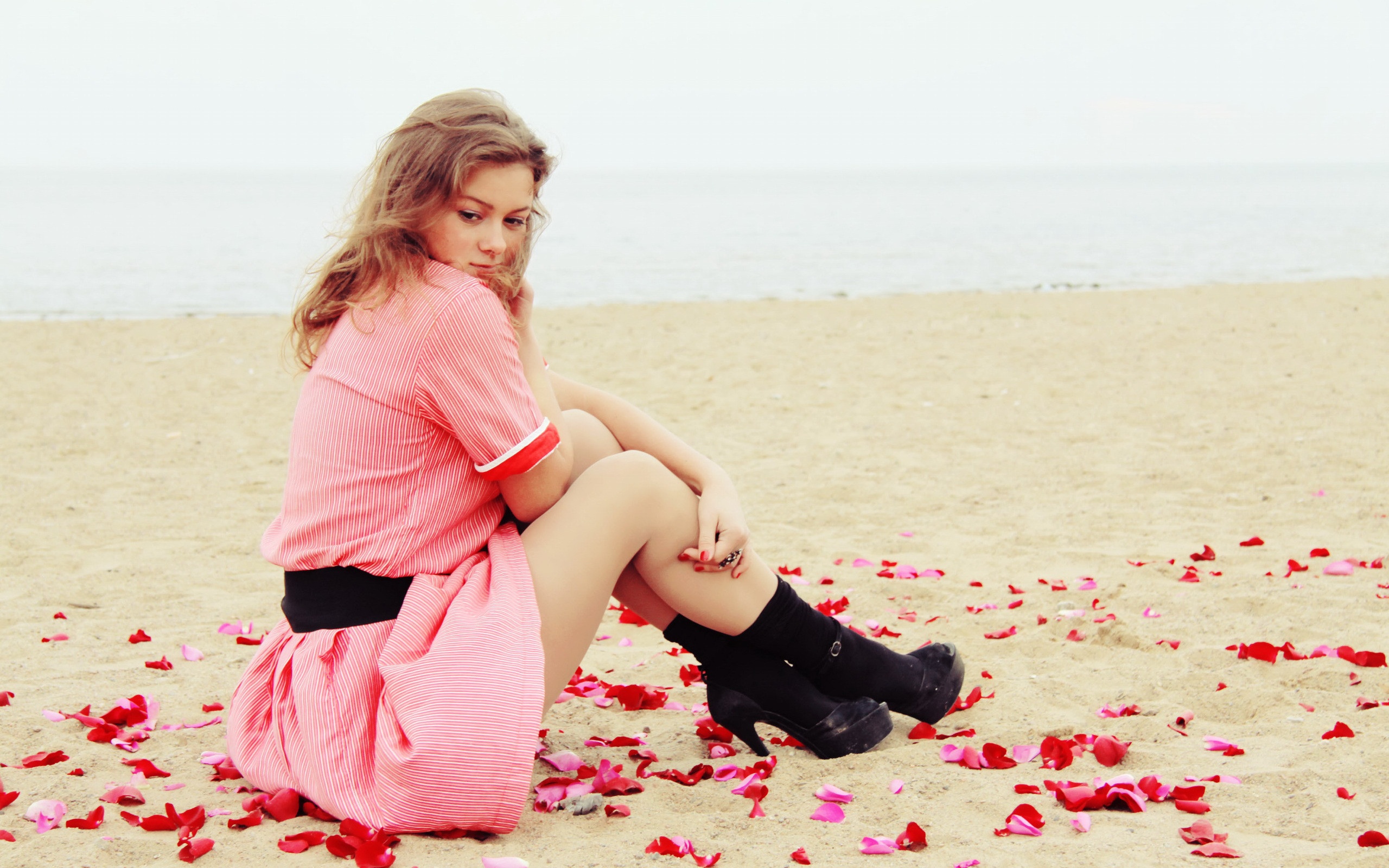 «Девушка среди лепестков на пляже»