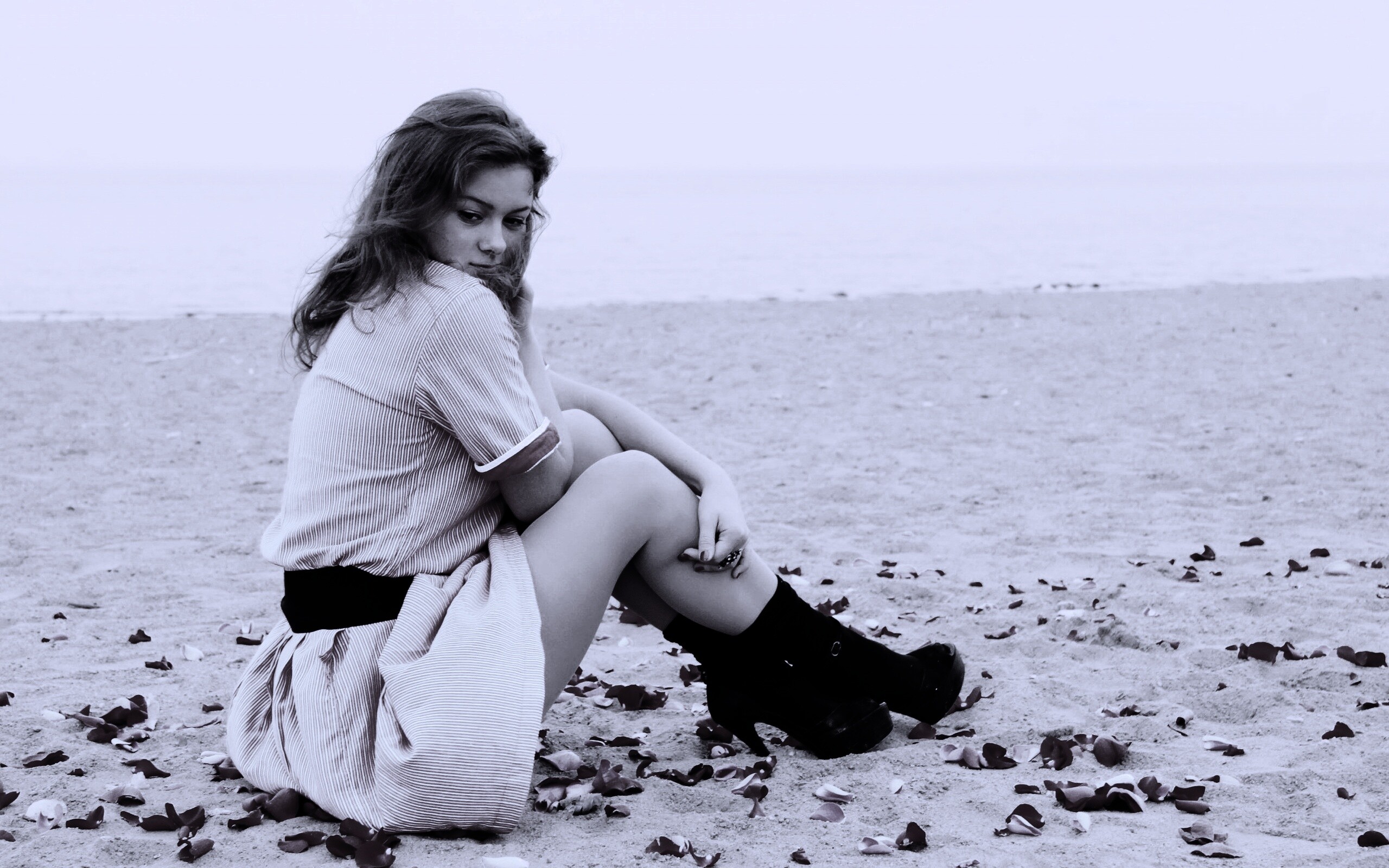 «Девушка среди лепестков на пляже»