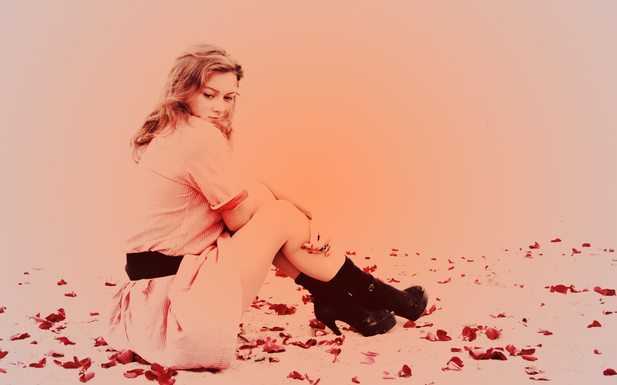 «Девушка среди лепестков на пляже»