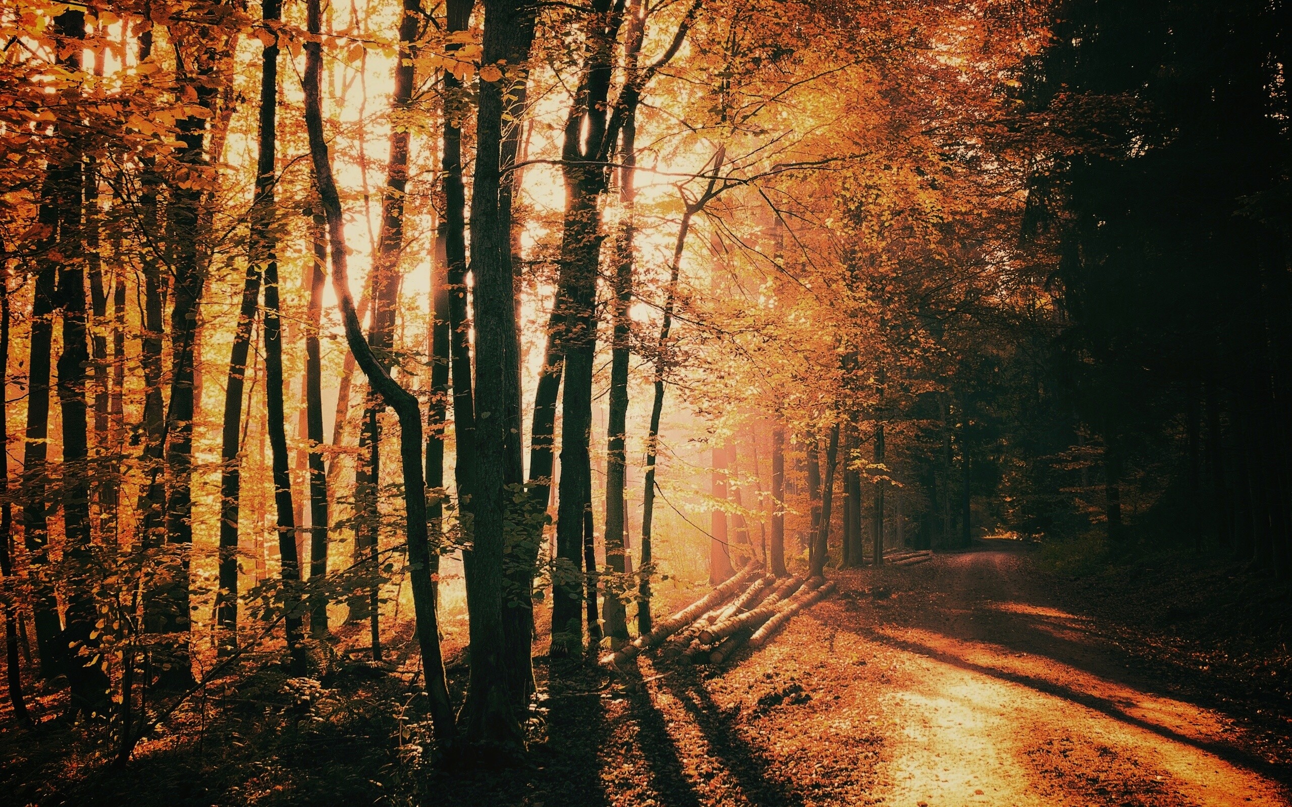 «Дорога вдоль просеки в осеннем лесу»