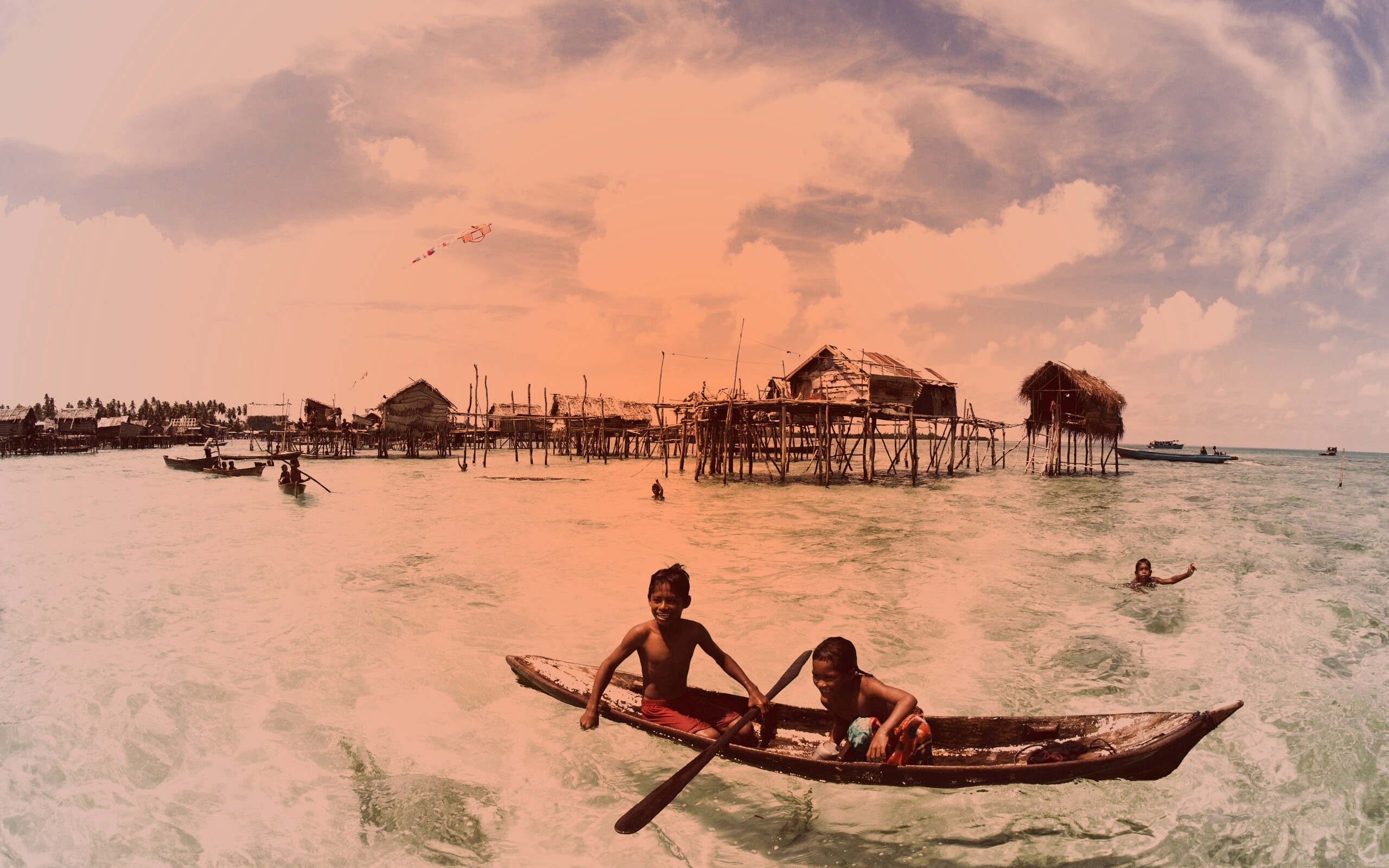 «Дети в лодке у поселения туземцев»