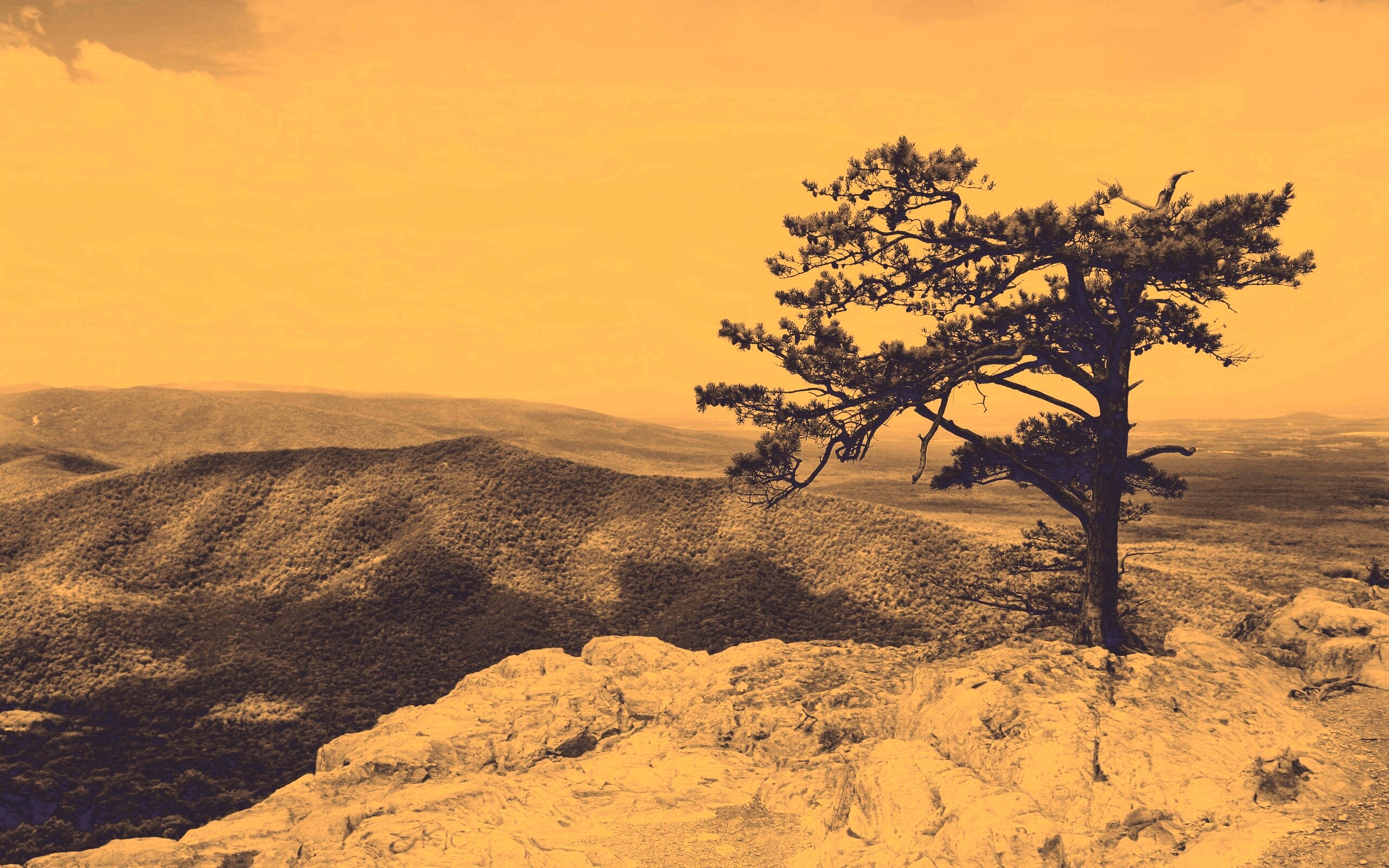 Обои для рабочего стола «Горное дерево в черно-белых тонах» 2560х1600 с фильтром nashville (оригинал 2560х1600)