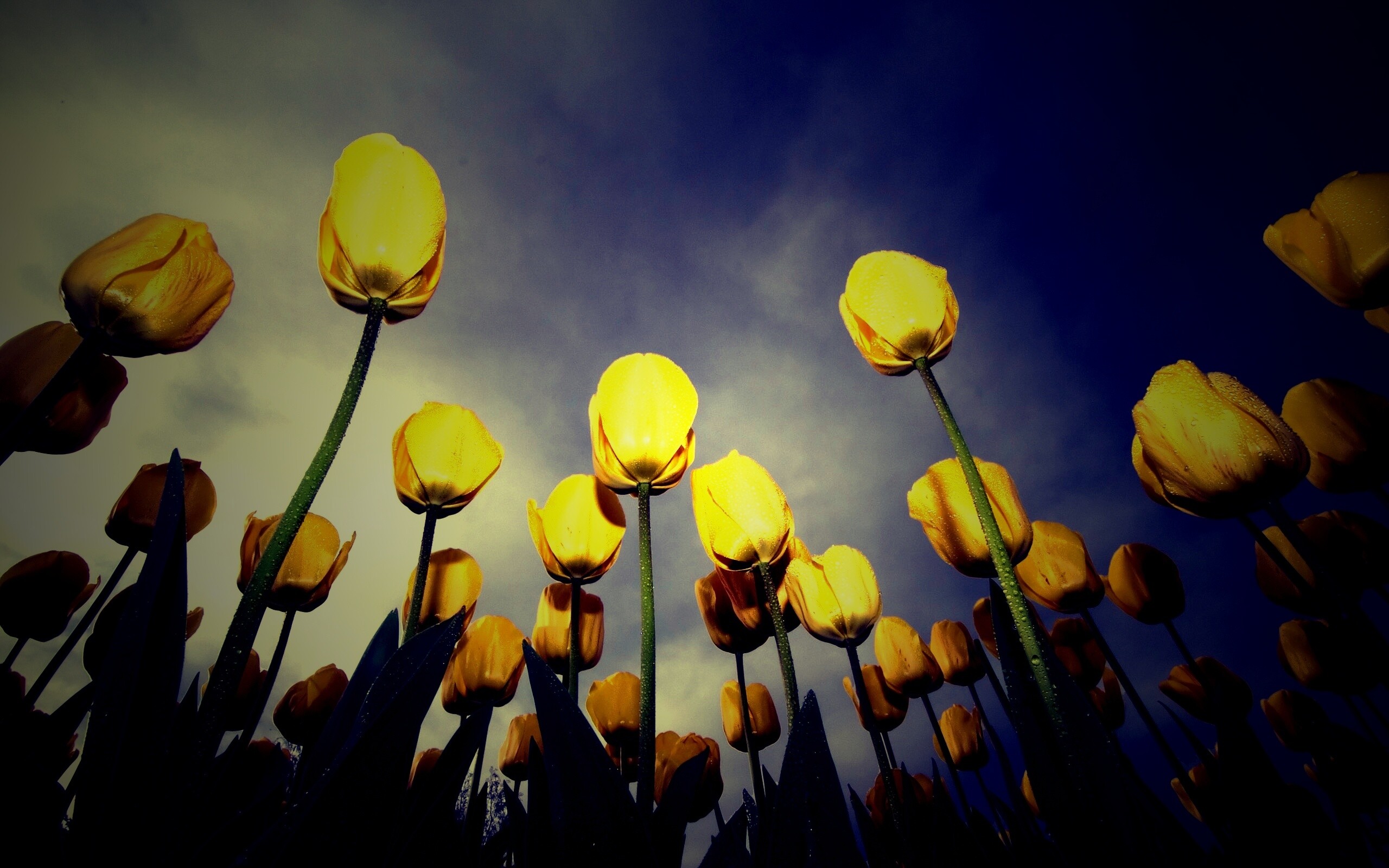 Обои для рабочего стола «Жёлтые тюльпаны» 2560х1600 с фильтром lomo (оригинал 2560х1600)