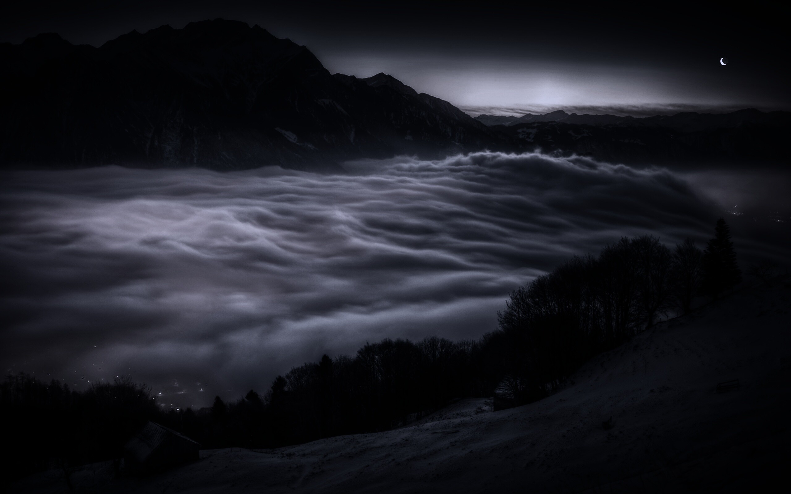 Обои для рабочего стола «Туман в долине» 2560х1600 с фильтром gotham (оригинал 4255х2830)