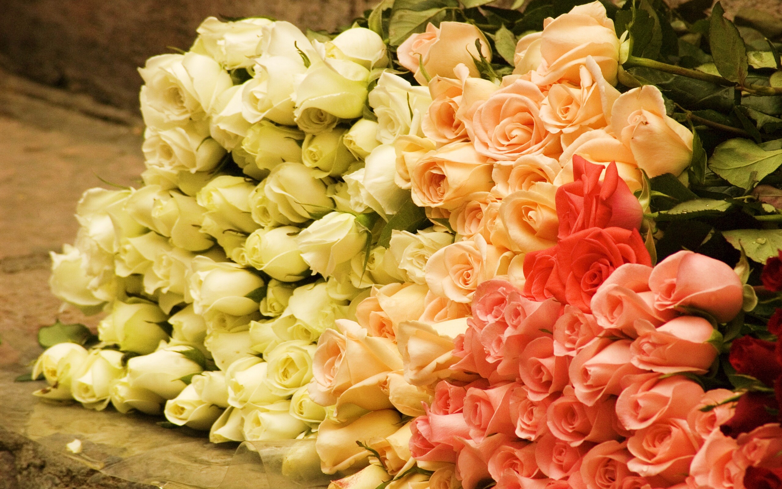 Обои для рабочего стола «Букеты светлых роз» 2560х1600 с фильтром vibrance (оригинал 2560х1600)