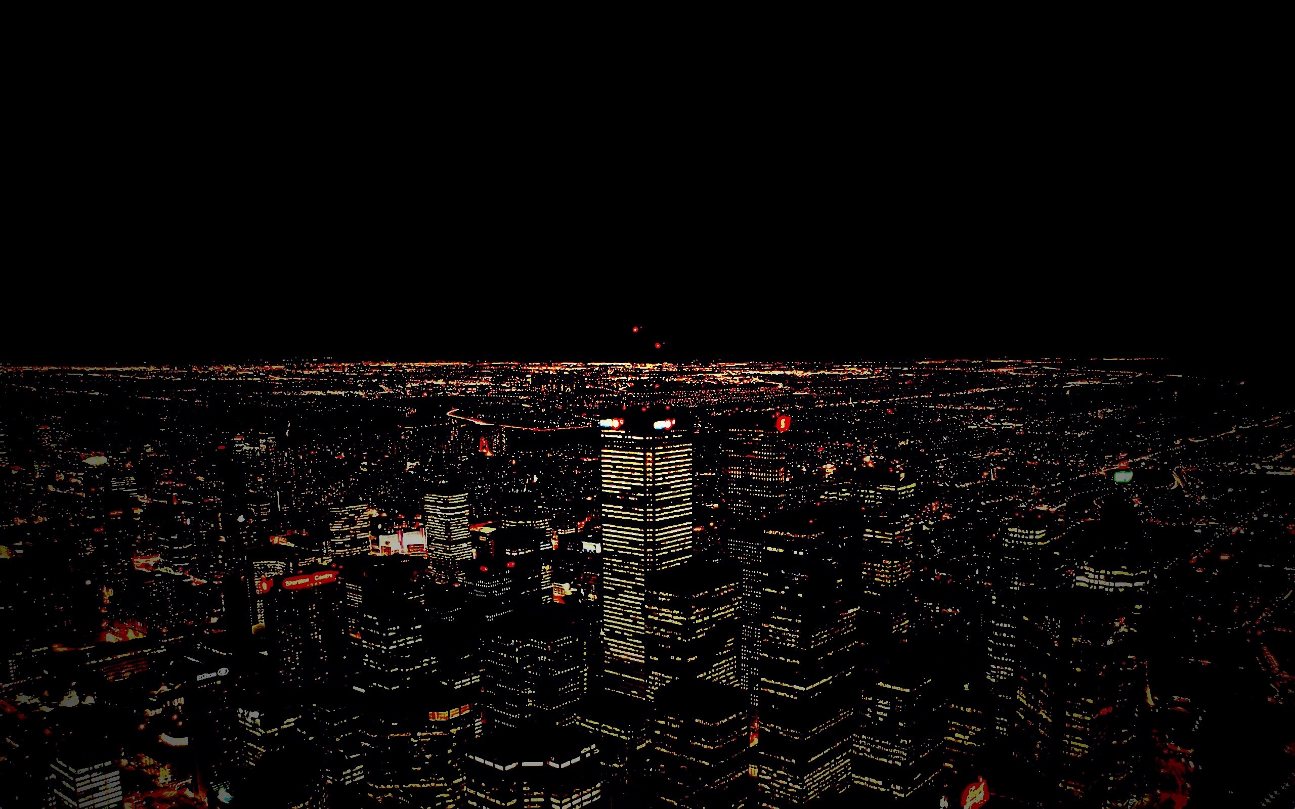 Обои для рабочего стола «Вид на здания ночного города» 2560х1600 с фильтром lomo (оригинал 2560х1600)