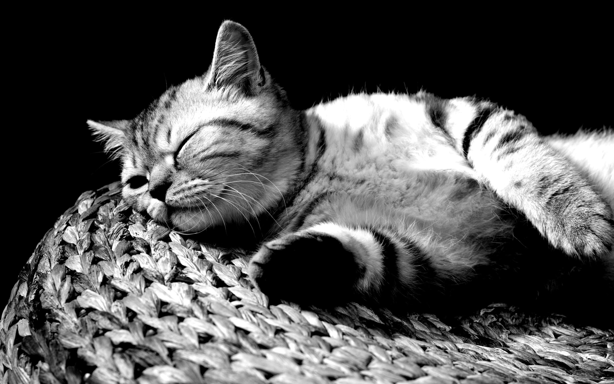 «Пушистый кот спит на корзине»