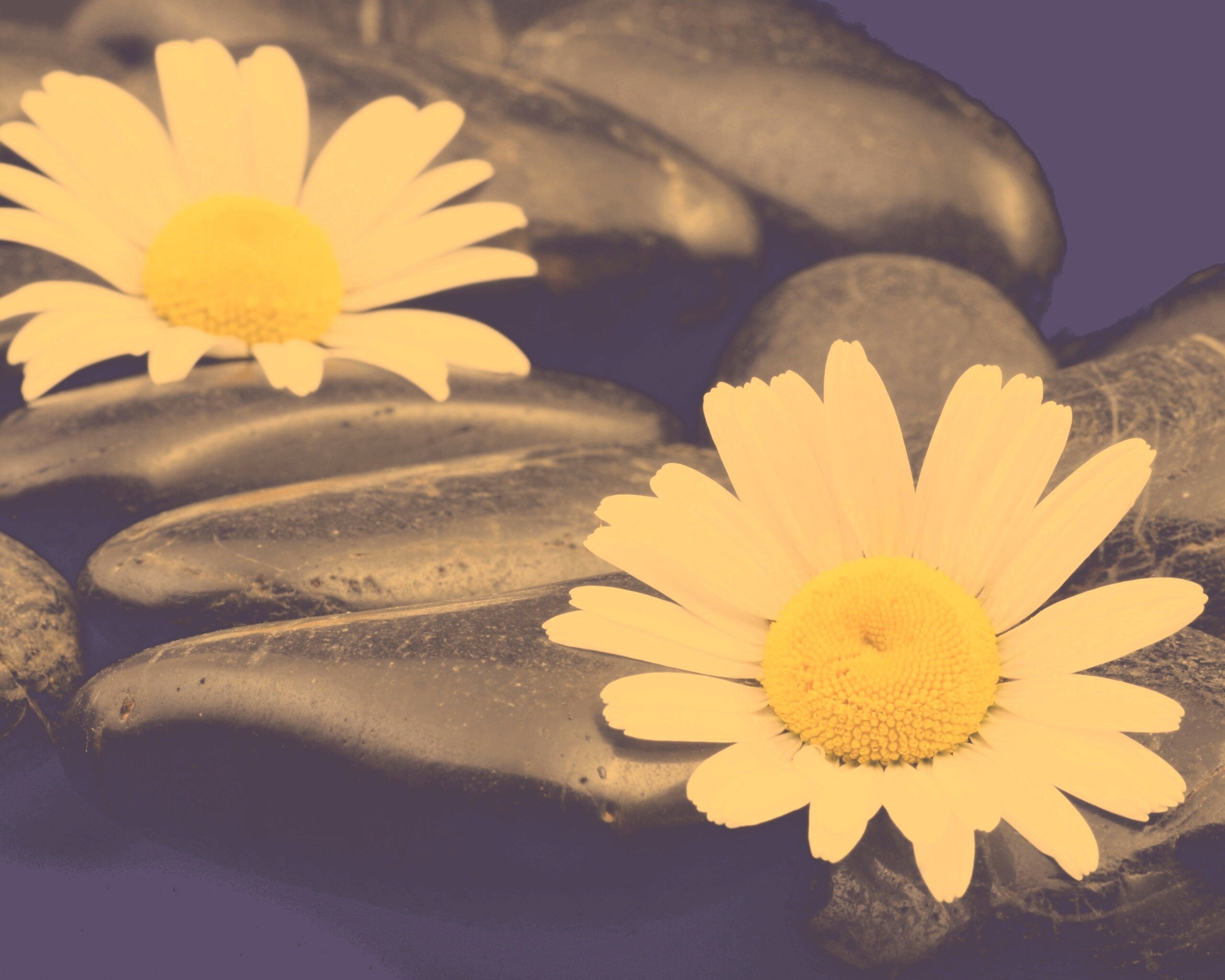 Обои для рабочего стола «Ромашка среди гальки» 2560х2048 с фильтром nashville (оригинал 3872х2592)