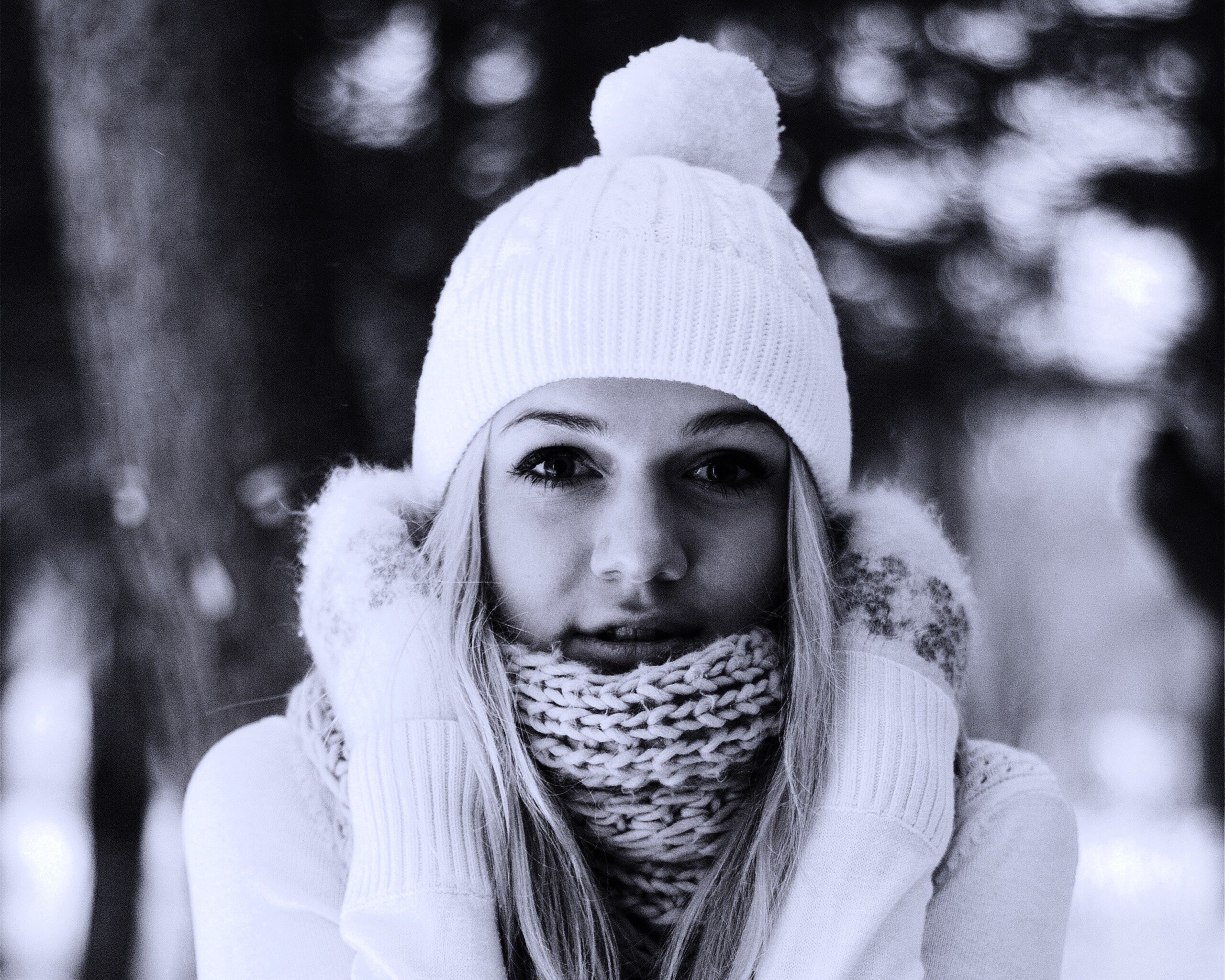 «Девушка в белом в снежном лесу»