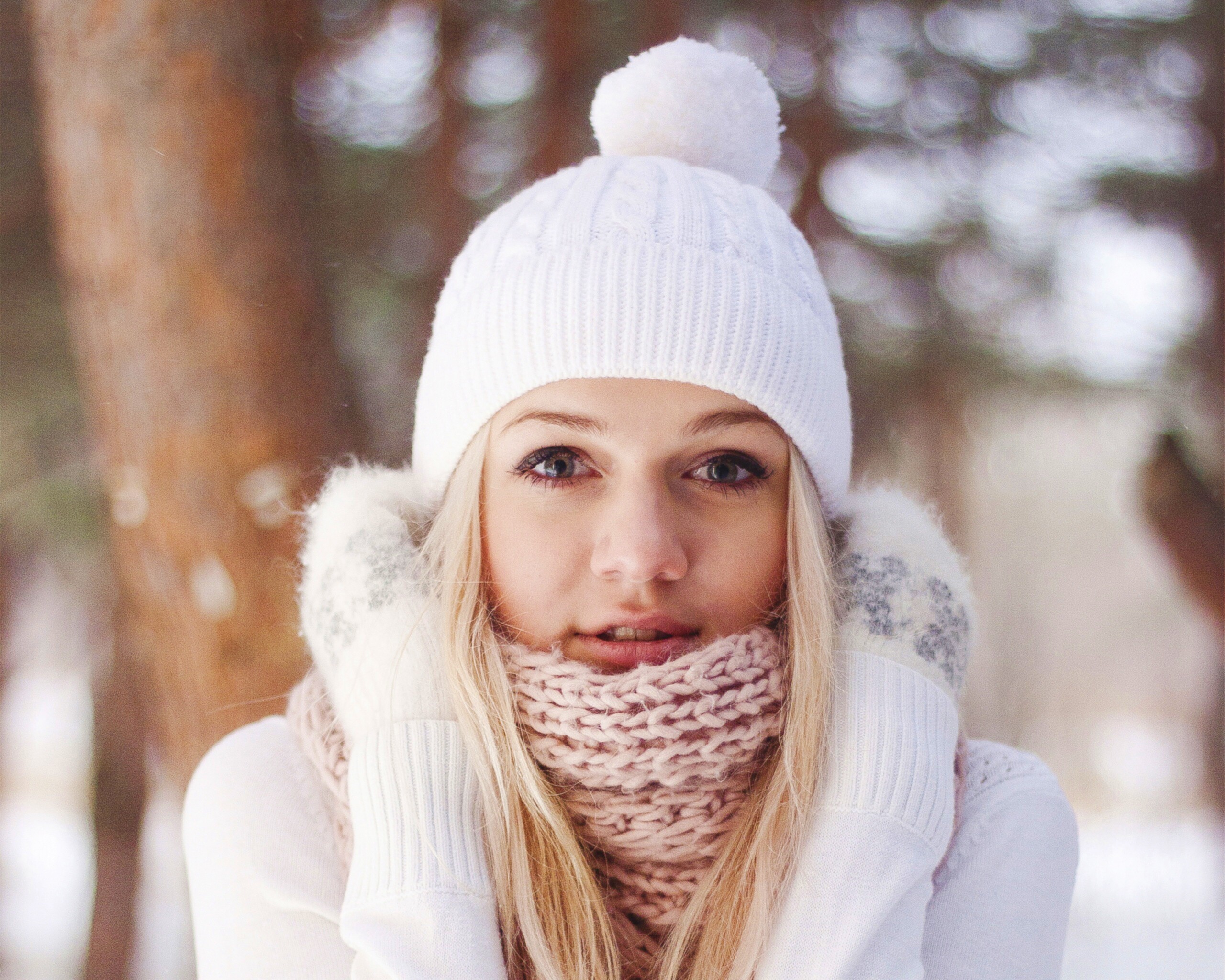 «Девушка в белом в снежном лесу»