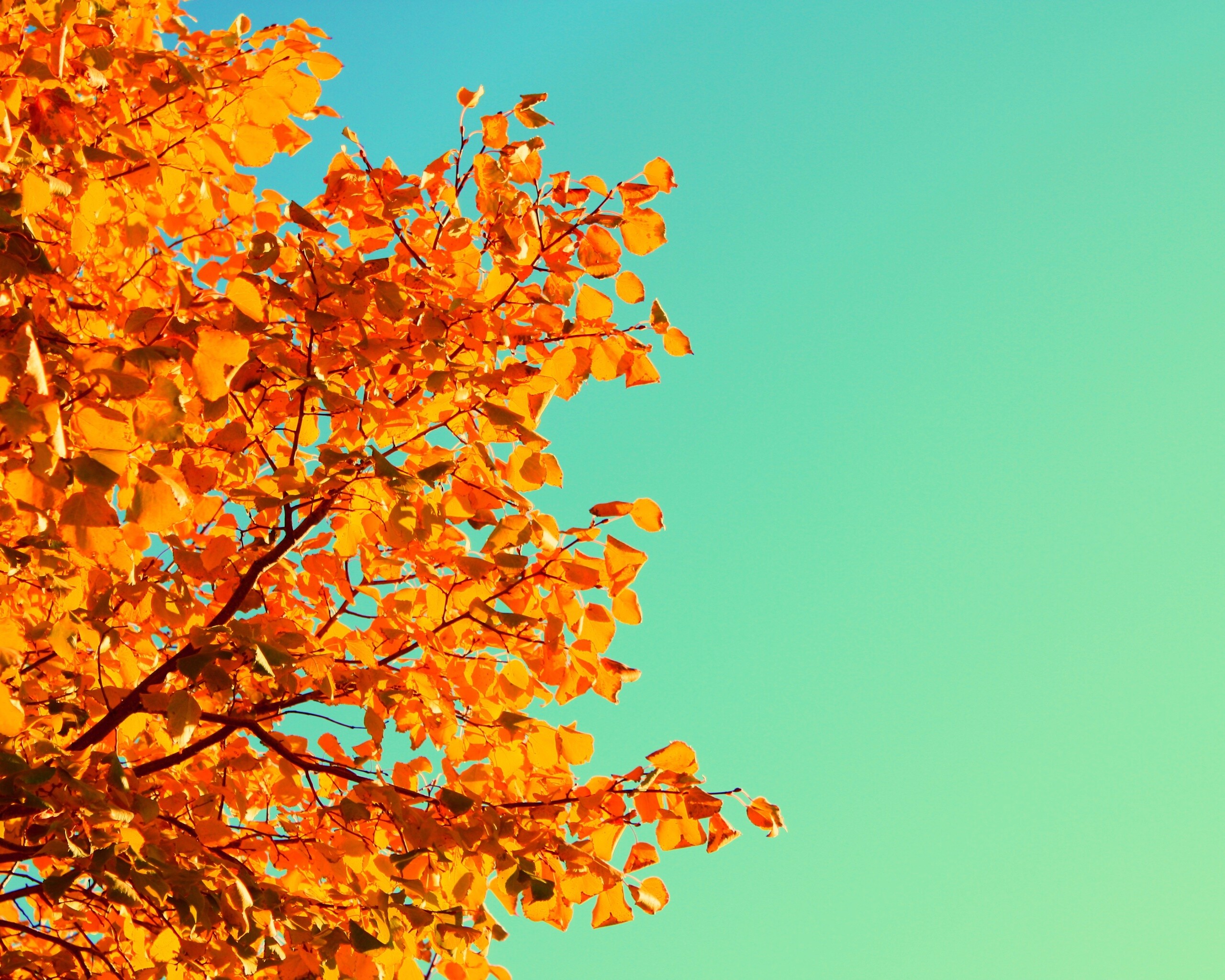 «Ветви с пожелтевшими листьями на фоне неба»