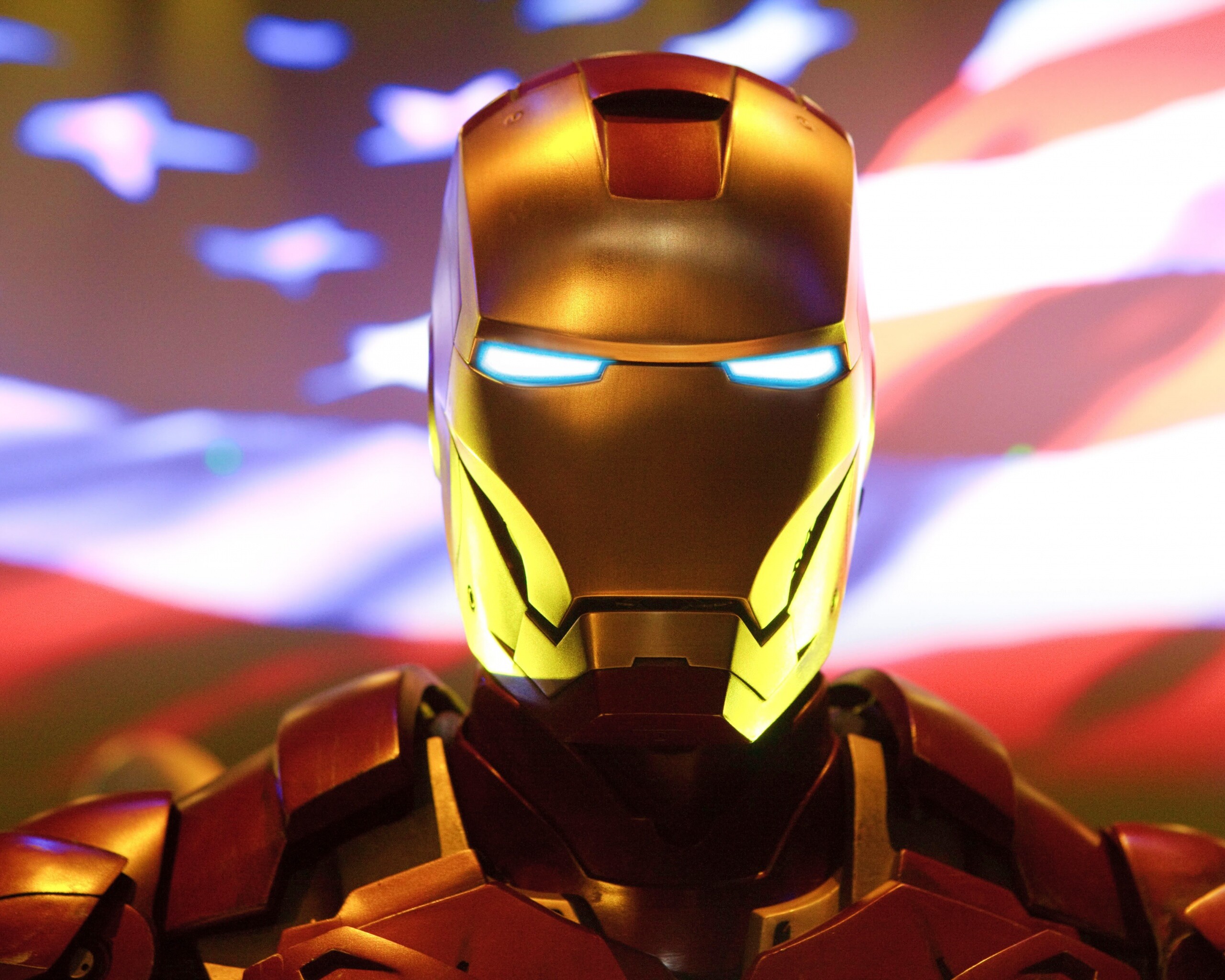 «Железный человек на фоне американского флага»