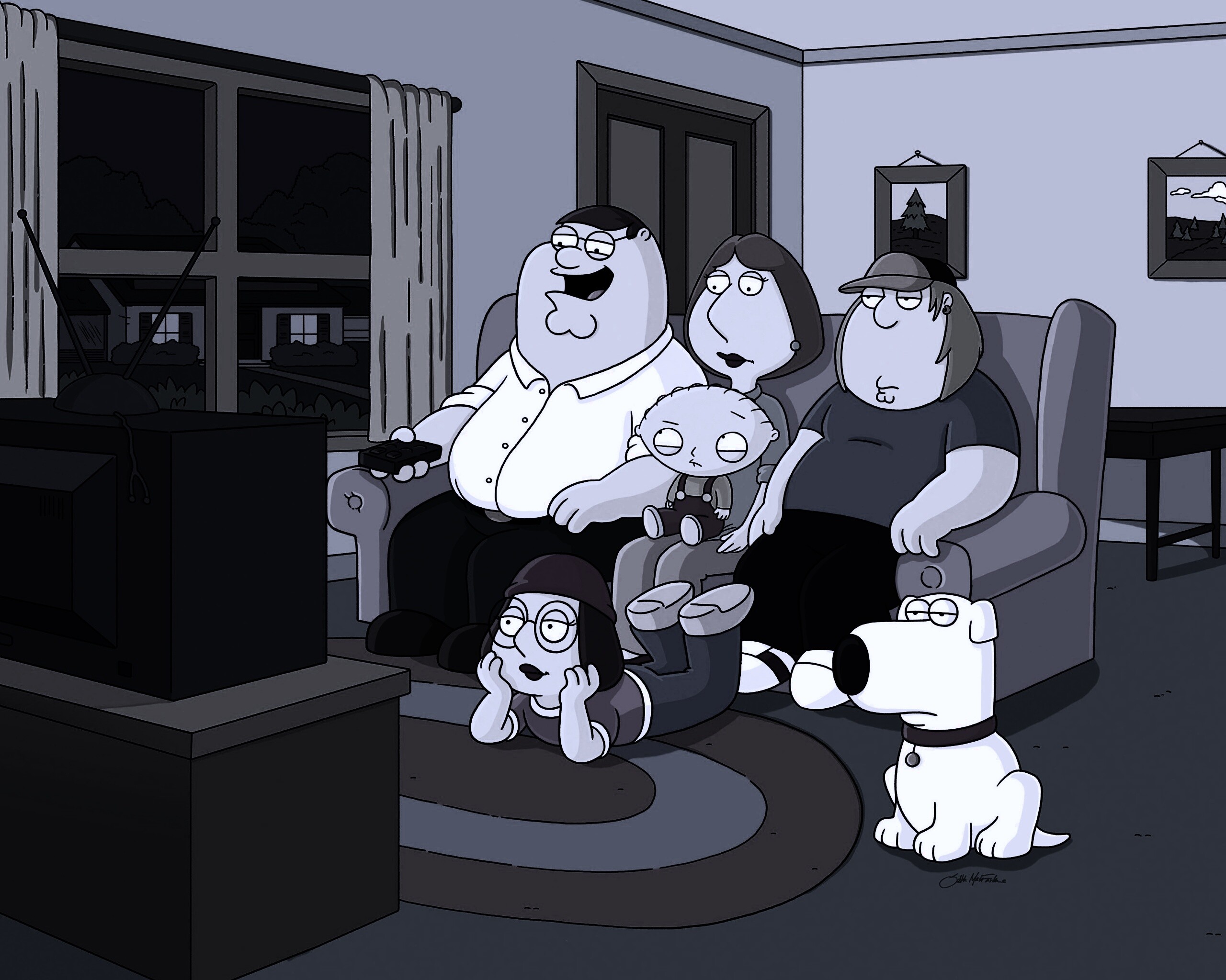 «Гриффины всей семьей перед телевизором»