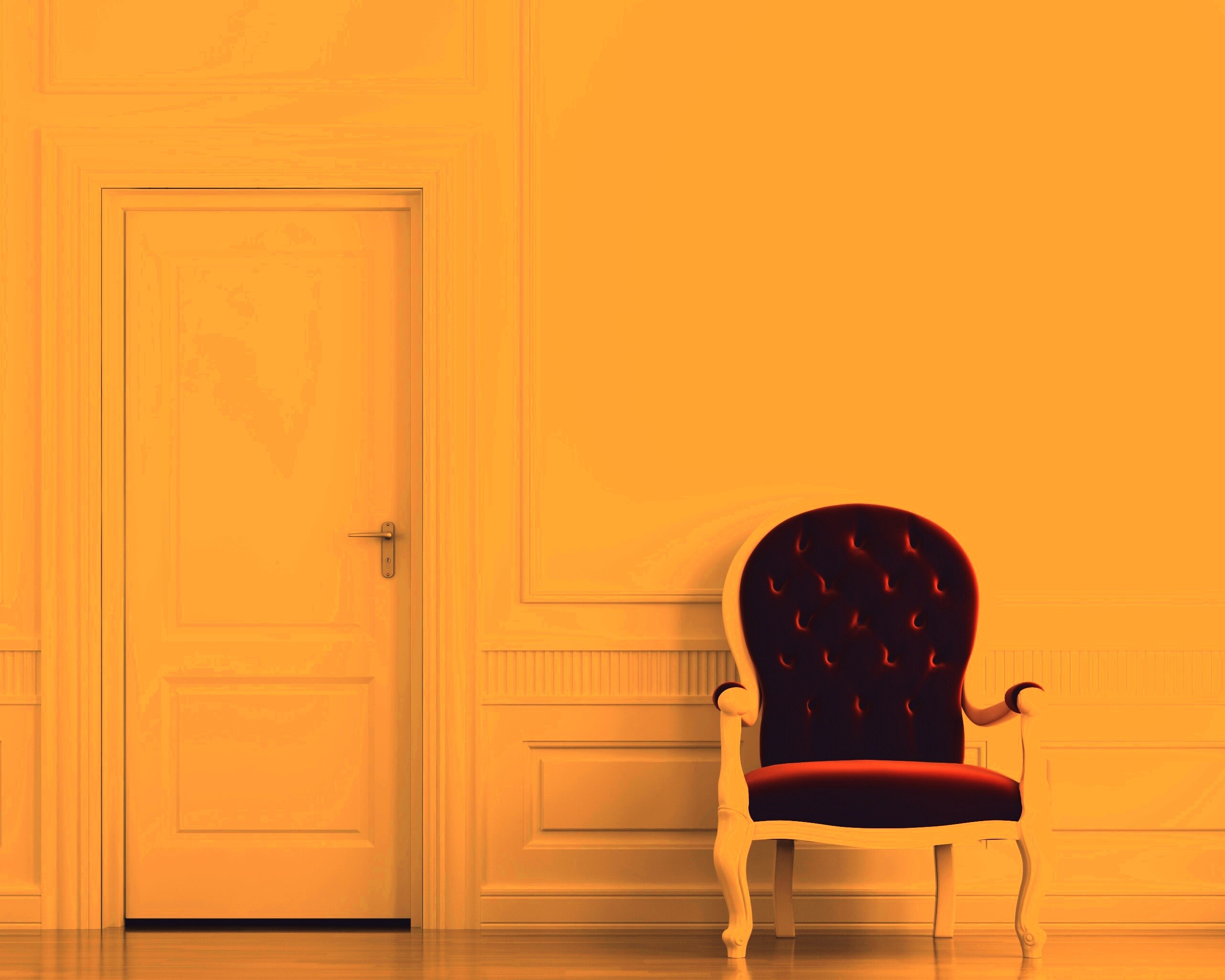«красное кресло в белой комнате»